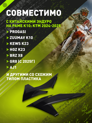 Главная ... Боковой пластик Боковые обтекатели передние (комплект) на эндуро КТМ 24г. (рама К10) чёрные