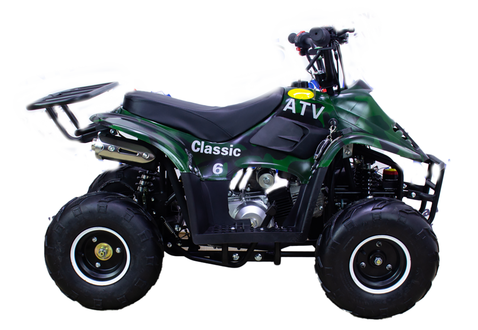 Квадроцикл ATV Classic 6 110 кубов предназначен для юных пользователей. Эта модель отличается хорошими ходовыми показателями и простотой сборки. Сердце машины – 4-хтактный двигатель с 1 цилиндром и воздушным охлаждением. Объем 110 кубов генерирует 7 л.с., что при максимальном разгоне дает до 60 км/ч. Родители могут сами ограничить эту цифру до желаемой отметки благодаря встроенному ограничителю скорости. Например, для совсем маленьких детей или только пробующих свои силы в управлении мототранспортом достаточно 15-25 км/ч.ДАННАЯ МОДЕЛЬ ПОСТАВЛЯЕТСЯ БЕЗ ПТС