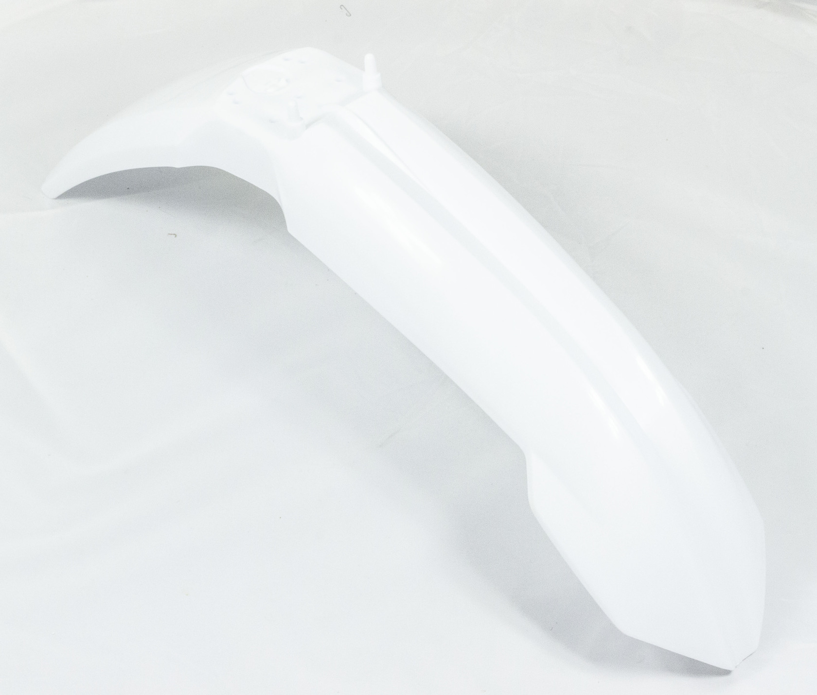 • Белое переднее крыло для мотоциклов KTM SX85 2013-2016 года, а также аналогичных китайских моделей на раме K5. Деталь изготовлена из высококачественного ударопрочного пластика по типу KTM SX85 и подходит для интенсивной эксплуатации в условиях эндуро. Полный аналог оригинального крыла KTM с артикулом 4710801000004. Крыло придаёт мотоциклу фирменный стиль KTM и обеспечивает надёжную защиту передней части от грязи и камней. Простая установка на штатные места без доработок.