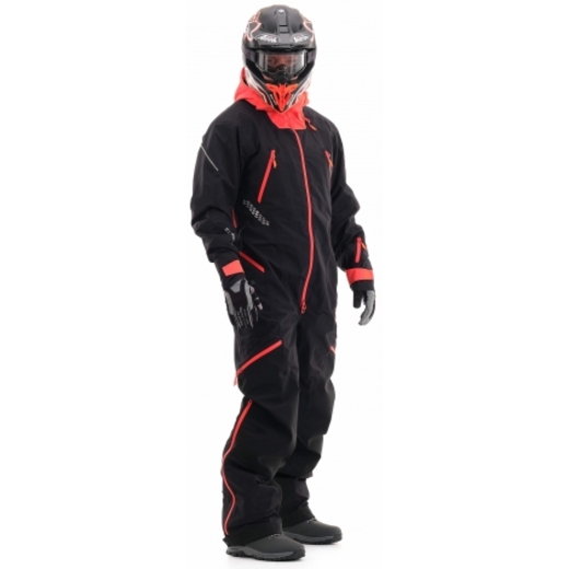 Комбинезон предназначен для снегохода и сноубайка. Надежно защитит от ледяного ветра и мокрого снега. Ткань верха дополнительно содержит тефлоновое. водоотталкивающее покрытие. Внешние молнии влагозащитные. Проклеены все швы. На рукавах есть эластичные манжеты, на штанинах снегозащитные юбки с петлёй для фиксации к ботинкам. При закрытой вентиляции и карманах комбинезон герметичен.Функционал комбинезона тщательно продуман и зарекомендовал себя среди снегоходчиков и сноубайкеров. Светоотражающие элементы есть со всех сторон. Семь карманов покрывают все потребности райдера, в том числе для ски-паса, телефона, и теплые, для согревания рук. Есть удобная петля под тангенту рации и кольцо D-ring для ключа горного снегохода. Центральная молнии с тремя замками: открывается сверху и снизу. Несъемный капюшон с двойной утяжкой. Для удобства приема пищи и воды во время стоянки – есть расширения на воротнике, защищает от ветра в расстёгнутом виде. В помещении можно снять верхнюю часть комбинезона и воспользоваться регулируемыми лямками - подтяжками.