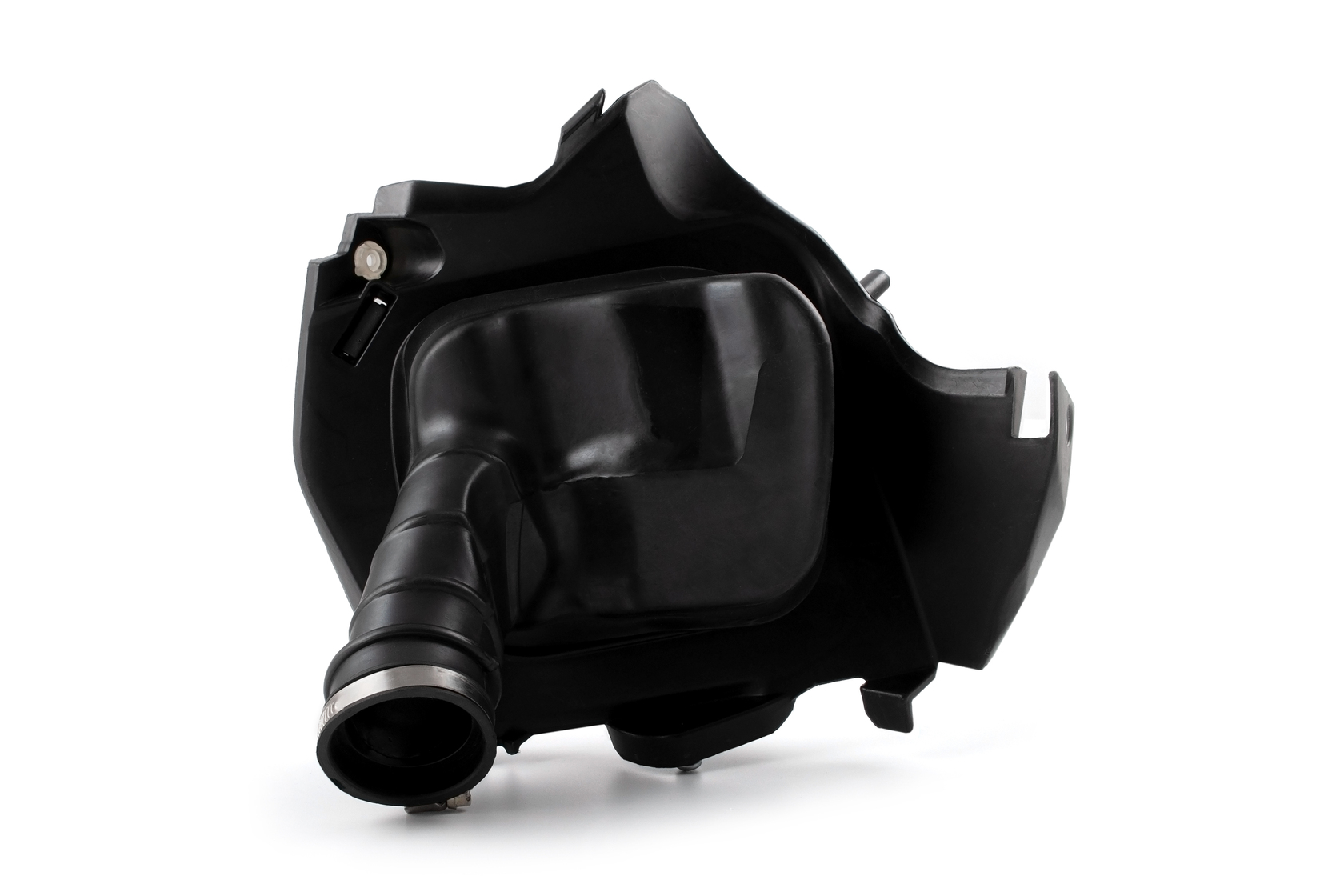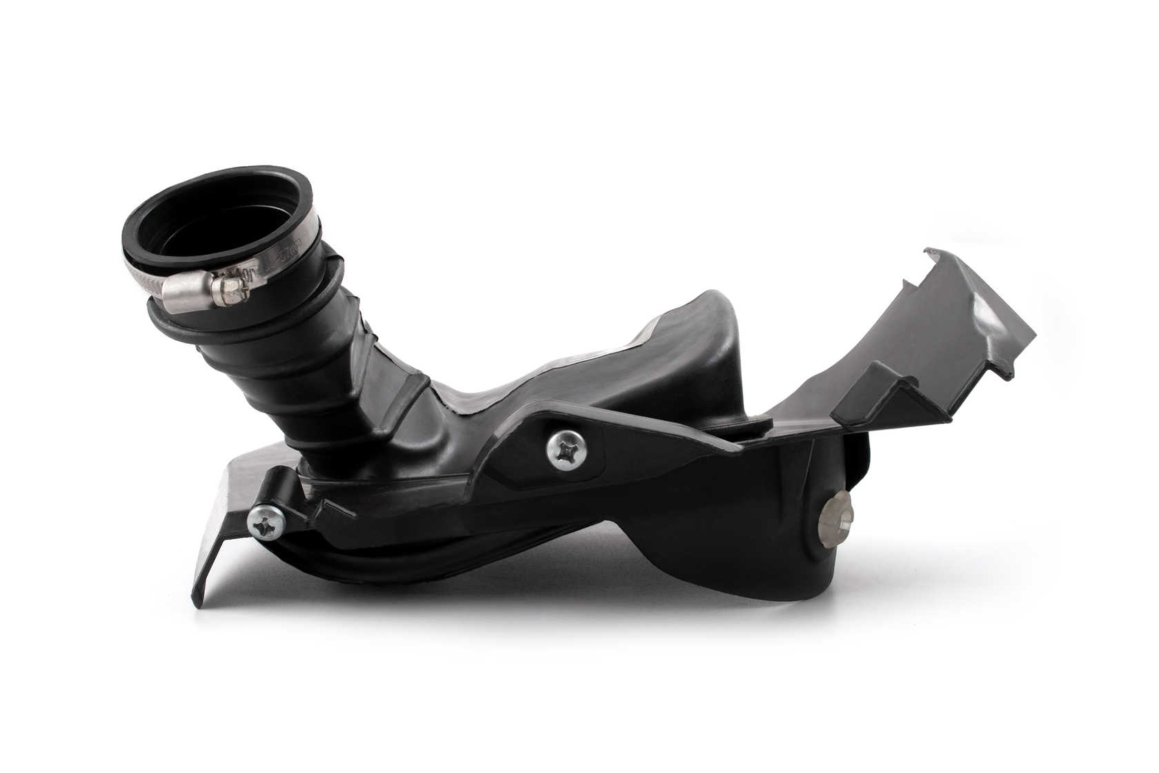 Деталь представляет собой готовый к установке модуль: пластиковая стенка короба интегрирована с резиновым манифольдом. Это экономит время и избавляет от необходимости переклеивать или герметизировать стыки деталей самостоятельно.