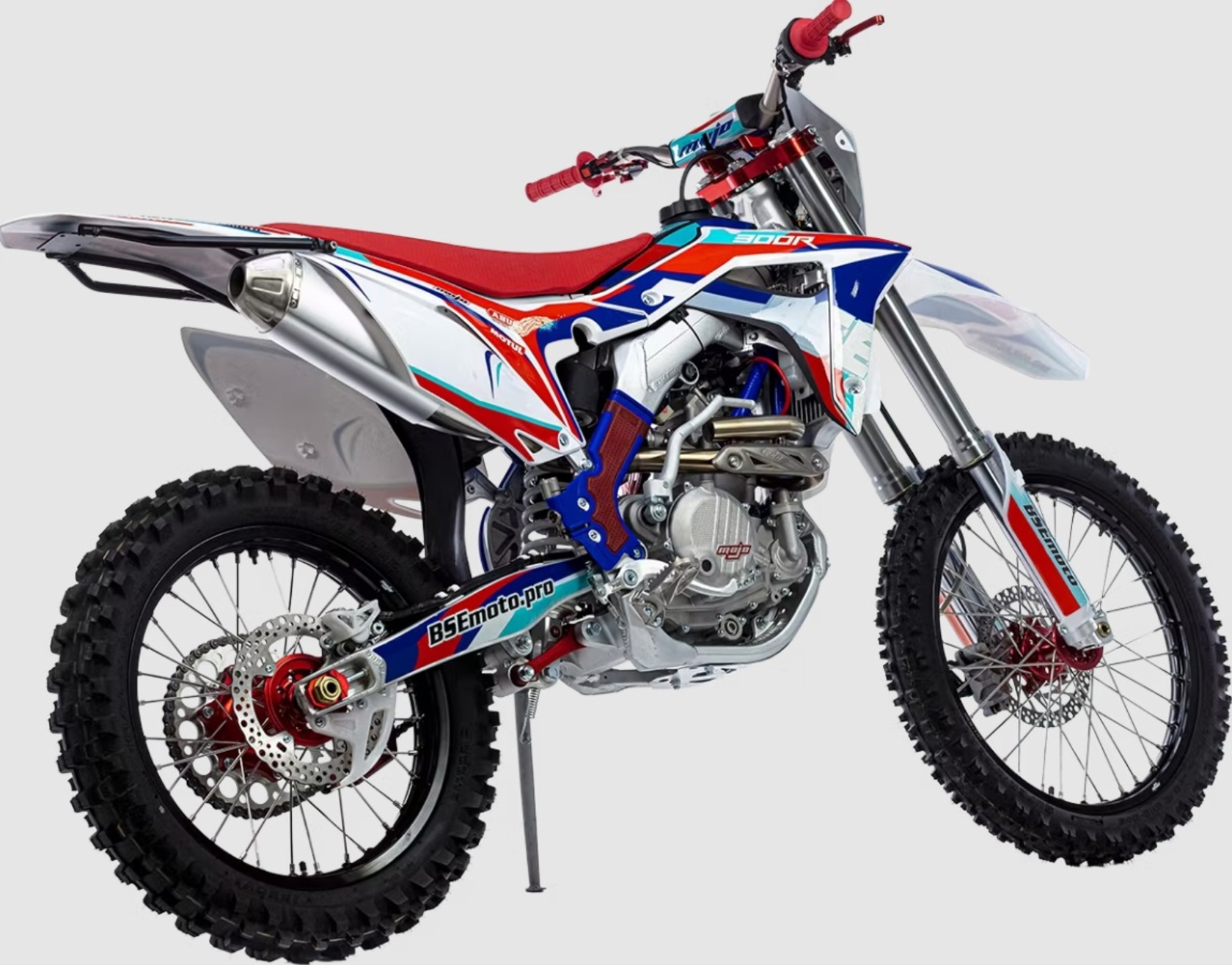 RTC300R – бескомпромиссный, ‘’топовый’’ спортивный снаряд для самых требовательных райдеров! Вам нужен самый мощный мотоцикл с жидкостным охлаждением на крепкой алюминиевой раме? Вам важна уверенность в любых ситуациях? Планируете покорять новые внедорожные высоты и хотите участвовать в профессиональных гонках? Ваша стихия мотокросс или хард эндуро? BSE RTC300R – идеальный выбор для райдера высокого уровня или спортсмена. Полноразмерный, идеально сбалансированный, устойчивый, спортивный мотоцикл. Алюминиевая рама - оригинальная, многосоставная, невероятно крепкая и запатентованная заводом Bosuer. Сердце RTC300R – мощный, эластичный и надежный 300 кубовый Zongshen ZS 177 FMM CBS300 мощностью 34 лс с водяным охлаждением. Отличные показатели крутящего момента во всем диапазоне оборотов. Система подачи топлива – спортивный карбюратор NIBBI RACING 34. Имеется вентилятор охлаждения. Коробка передач - 6 ступенчатая механическая. RTC300R уже в заводской комплектации готов к покорению серьезного бездорожья и участию в соревнованиях. Подвеска MOJO c большими ходами имеет полный диапазон регулировок и помогает отрабатывать даже самые жесткие приземления, с лёгкостью "проглатывает" все неровности. Идеальная развесовка и сбалансированность конструкции мотоцикла даёт преимущество при прохождении острых поворотов и подъёмов. На мотоцикле установлено все необходимое для оффроуда: вилка “перевертыш”, литые рычаги задней прогрессии, алюминиевый маятник, прочный задний бугель, “злая” внедорожная резина Kenda. А также: усиленные легкосплавные колёсные диски MOJO, усиленная цепь, защита рук, датчик моточасов, прочные анодированные CNC ступицы, складные СNC рычаги тормоза и сцепления, колесные подшипники NTN, защита коллектора, днища и тормозных дисков. Мощная гидравлическая тормозная система HSК Racing остановит байк в любых условиях. На BSE RTC300R также можно с комфортном отправиться в продолжительное путешествие благодаря удобному сиденью, широкому спортивному рулю, наличию электростартера и топливному баку на 6.5 литра. C яркой LED фарой головного света можно кататься в ночное время. Хочется также отметить современный дизайн мотоцикла.