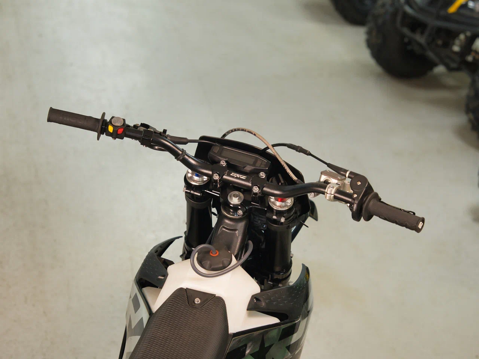 ДОПы Руль 28мм. Короткоходная ручка газа. Цепь 520. Алюминиевая лапка КПП, боковые накладки на рамы. Счетчик моточасов, приборная панель. Стоп сигнал.