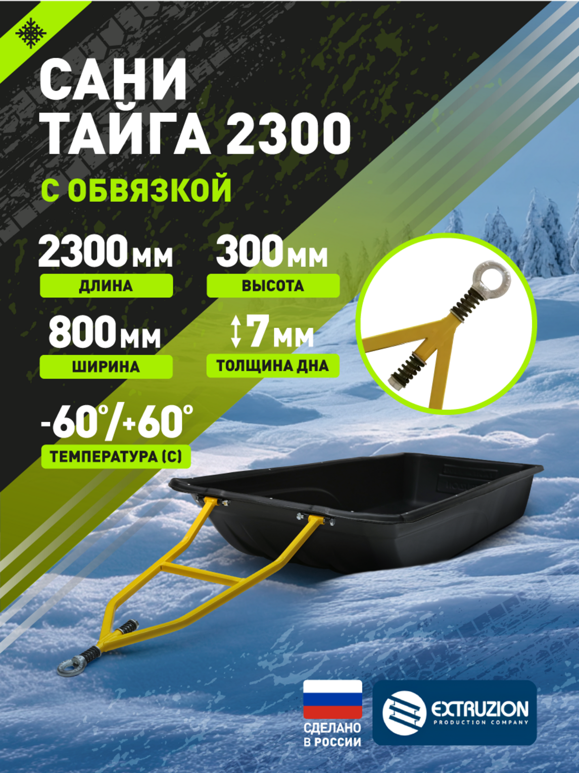 • Крупногабаритные сани-прицеп для профессионального использования с снегоходами и мотобуксировщиками. Максимальная длина 2300 мм обеспечивает исключительную вместимость для перевозки особо объемных грузов. Изготовлены из сверхпрочного ПНД с УФ-стабилизацией. Полная комплектация сцепным устройством и стропами обвязки.