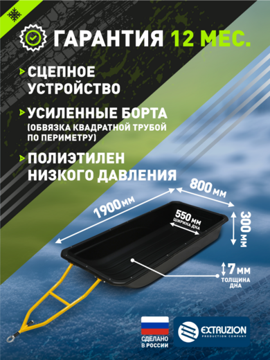 • Крупногабаритные сани-прицеп для профессионального использования с снегоходами и мотобуксировщиками. Увеличенная длина 1900 мм обеспечивает повышенную вместимость для перевозки объемных грузов. Изготовлены из сверхпрочного ПНД с УФ-стабилизацией. Полная комплектация сцепным устройством и стропами обвязки.