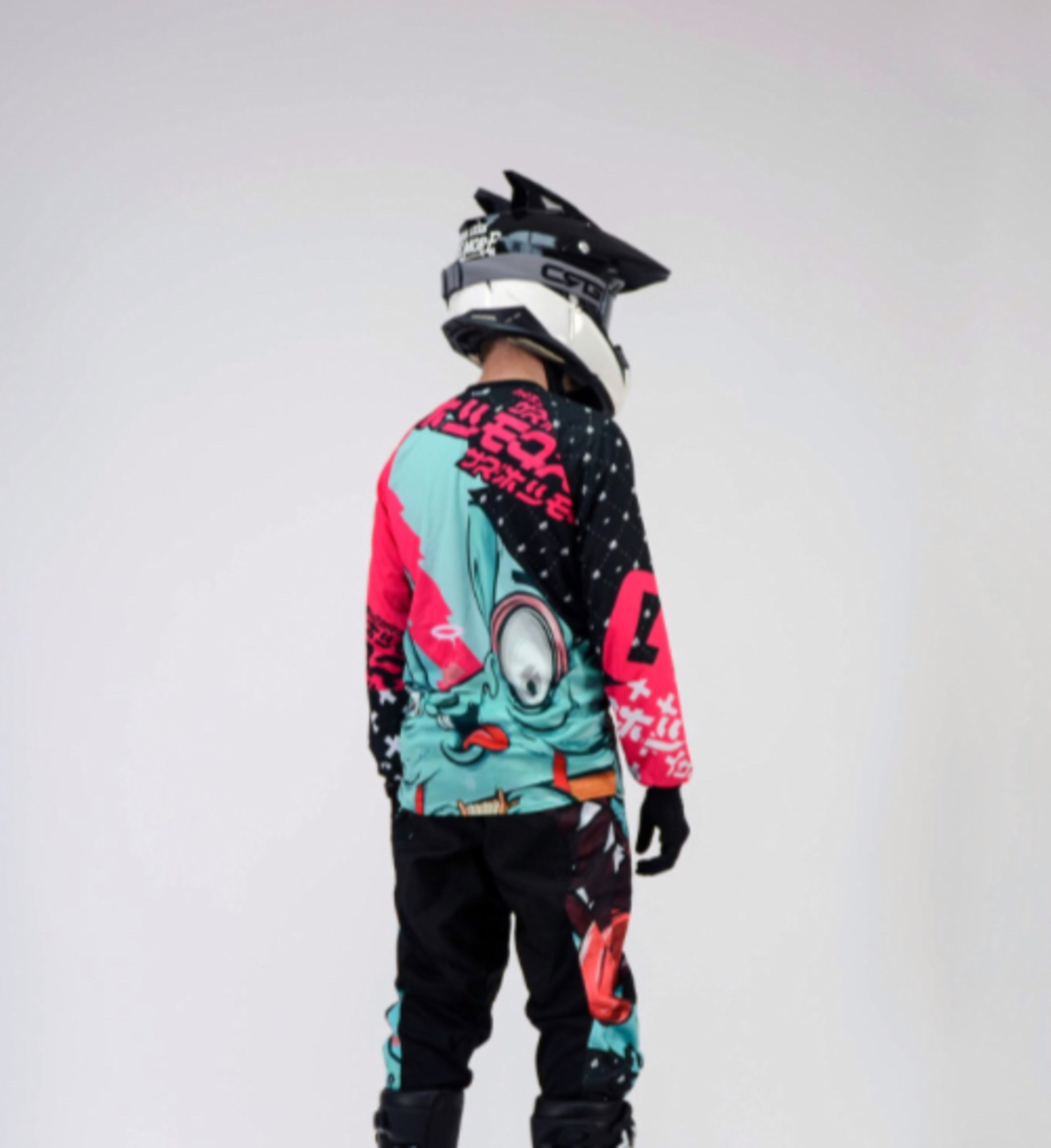 Классический комплект момтоэкипировки.Особенности:Штаны:• Кожаные накладки на внутренней стороне голени;• Замок-трещётка с регулировкой;• Боковые утяжки на липах;• Крой выполнен с учётом наколенников;• Мягкие вставки расположены в области колен;• Тянущийся материал в нужных местах для свободы движений.Джерси:• Крой реглан или классика;• Учтён запас под налокотники;• Лёгкий и быстросохнущий материал;• Принт не выстирывается и не выгорает;• Выбор тканей и кастомизация(Нанесение номера и фамилии на экипировку - бесплатно.Разработка вашего дизайна по ТЗ, оплачивается дополнительно).Ткани ( на заказ и на выбор, ложная сетка уже входит):• Ложная сетка(стандарт): Самая распространенная ткань в производстве формы. Отлично зарекомендовала себя, как золотая середина. Мягкая на ощупь, с выраженной фактурой;Производство: Индонезия;• Состав: 100% Полиэстер;• Плотность: 135 гр.• Ткань Cube:Уникальная ткань. Сделана из FDY нити (дополнительно полированный полиэстр). Даёт ощущение шёлка, отлично охлаждает и отводит влагу. Не боится зацепов, не мнется, за счёт шлифовки дает чуть более сочные цвета формы.•Производство: Европа;• Состав: 100% Полиэстер;• Плотность: 135 гр.• Ткань CoolMax: Ткань с технологией CoolMax - отличные характеристики влагоотвода и комфорта. Мягкая, шёлковая на ощупь, ткань. Подходит для профессиональных занятий спортом.• Производство: Турция;• Состав: 100% Полиэстер;• Плотность: 130 гр.Ткань Олимп(стандарт):• Ткань с ярко выраженными отверстиями. Отлично продувается. Особыми свойствами не обладает.Часто используется для вставок.• Производство: Турция;• Состав: 100% Полиэстер;• Плотность: 135 гр.