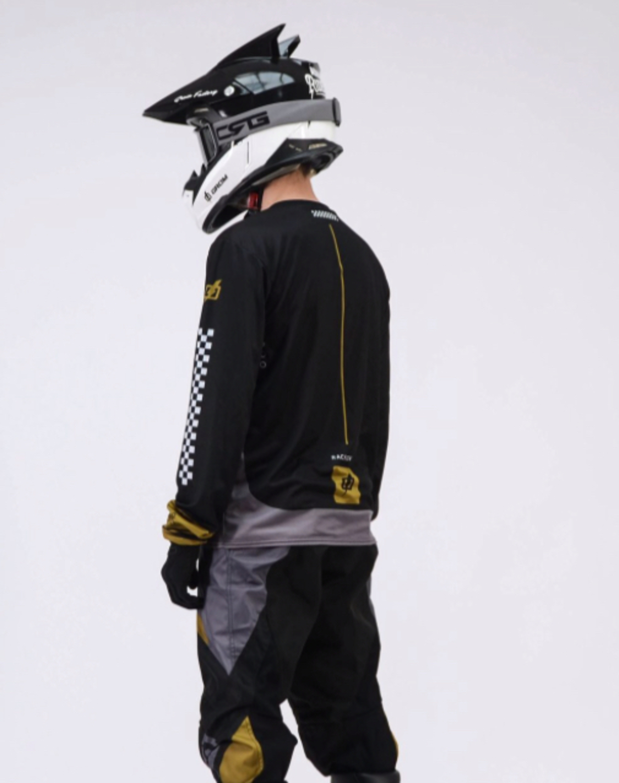 Классический комплект момтоэкипировки.Особенности:Штаны:• Кожаные накладки на внутренней стороне голени;• Замок-трещётка с регулировкой;• Боковые утяжки на липах;• Крой выполнен с учётом наколенников;• Мягкие вставки расположены в области колен;• Тянущийся материал в нужных местах для свободы движений.Джерси:• Крой реглан или классика;• Учтён запас под налокотники;• Лёгкий и быстросохнущий материал;• Принт не выстирывается и не выгорает;• Выбор тканей и кастомизация(Нанесение номера и фамилии на экипировку - бесплатно.Разработка вашего дизайна по ТЗ, оплачивается дополнительно).Ткани ( на заказ и на выбор, ложная сетка уже входит):• Ложная сетка(стандарт): Самая распространенная ткань в производстве формы. Отлично зарекомендовала себя, как золотая середина. Мягкая на ощупь, с выраженной фактурой;Производство: Индонезия;• Состав: 100% Полиэстер;• Плотность: 135 гр.• Ткань Cube:Уникальная ткань. Сделана из FDY нити (дополнительно полированный полиэстр). Даёт ощущение шёлка, отлично охлаждает и отводит влагу. Не боится зацепов, не мнется, за счёт шлифовки дает чуть более сочные цвета формы.•Производство: Европа;• Состав: 100% Полиэстер;• Плотность: 135 гр.• Ткань CoolMax: Ткань с технологией CoolMax - отличные характеристики влагоотвода и комфорта. Мягкая, шёлковая на ощупь, ткань. Подходит для профессиональных занятий спортом.• Производство: Турция;• Состав: 100% Полиэстер;• Плотность: 130 гр.Ткань Олимп(стандарт):• Ткань с ярко выраженными отверстиями. Отлично продувается. Особыми свойствами не обладает.Часто используется для вставок.• Производство: Турция;• Состав: 100% Полиэстер;• Плотность: 135 гр.