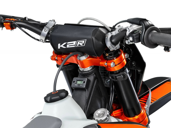 Моноамортизатор K2R Вилка K2R 48 мм (за основу взят амортизатор WP Xplor), регулировка сжатия и отбоя, сбросной клапан с компенсационным бачком и регулировками сжатия и отбоя установлен в рычажной системе, обеспечивающей прогрессивную характеристику работы задней подвески, что позволит как комфортно преодолевать мелкие кочки, так и совершать прыжки. Ход – 310 мм.