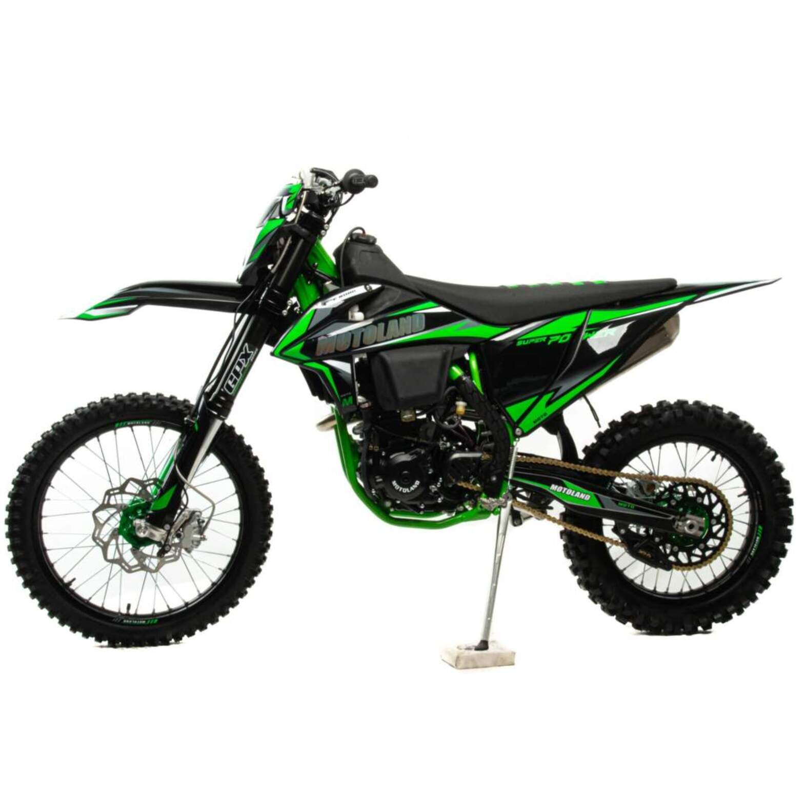 1MOTOLAND FX300 Современный дизайн мотоцикла подчёркивает спортивный характер байка.Установлен мощный двигатель с водяным охлаждением ZONGSHEN 174MN-3Большой ход подвесок для комфортного передвижения по пересеченной местности, которые также позволяют ехать быстро и агрессивно. Мотоцикл больше предназначен для езды по переченной местности полям и лесам, чем для города из за профиля резины.Он маневренный и удобный, сидение с противоскользящим чехлом.При этом он прост в управлении и неприхотлив в обслуживании и подходит мотолюбителям любого возраста и опыта вождения.Технические характеристикиАнтибуксаторы спереди и сзади для езды на пониженном давлении или защиты от прокручивания камеры