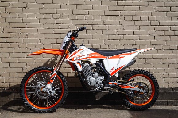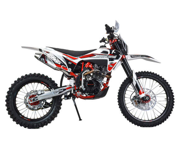 Мотоцикл Motoland X2 250 предназначен для езды по бездорожью и соревнований по мотокроссу. Имеет хорошую проходимость, прекрасно ведёт себя на песке и грунте, подходит для асфальтовых дорог. Оснащён двигателем 172FMM-3A мощностью 21 л.с. ,и карбюратором NIBBI PE 30.разгоняется до 120 км/ч. Выхлопная система из нерж. стали с резонатором "Рowerbomb", который увеличивает мощность на низких оборотах. Это одна из лучших моделей кроссовых мотоциклов по соотношению цены и качества.Подходит для новичков и любителей мотокросса. Идеален для бездорожья, его кроссовые шины (110-90) и (80-100) просто созданы для езды по мягкому и среднему грунту. Телескопическая вилка перевернутого типа позволяет легко преодолевать ямы, ухабы и другие неровности. Задняя подвеска маятниковая, с моноамортизатором.Мотоцикл доступен в ярком цвете "лайм" и отлично смотрится. Его дерзкий дизайн подчёркивает неуступчивый спортивный характер байка.Motoland X2 250 весит 120 кг, выдерживает нагрузку до 150 кг. Рама полудуплексная стальная. Прочный облицовочный пластик не ломается при сгибании, защищает от грязи. Надёжно закрепленный руль имеет переменное сечение: 28 мм в месте крепления и 22 мм на концах под грипсами, а также короткоходную ручку газа. Колёса на алюминиевых ободах, оснащены усиленными спицами и антибуксаторами, размер заднего колеса — 18 дюймов, переднего — 21 дюйм, а так же усиленными полыми осями.Для запуска двигателя можно использовать электростартёр или кикстартёр. Система зажигания электронная (CDI). Механическая трансмиссия содержит 5 передач. Отличный запас хода: объём топливного бака — 6 л, расход топлива — 5 л на 100 км. Передняя фара светодиодная, обновленного дизайна, легко включается поворотом замка зажигания и позволяет ездить в сумерках и темноте.Так же мотоцикл оснащён надёжными передними двухпоршневым тормозным суппортом и задними тормозами с однопоршневым тормозным суппортом, задним багажником, приборной панелью, поворотниками и зеркалами. Удлиненное сиденье, с антискользящим покрытием. Тормозные диски крепятся на 4 болтах, диаметр заднего тормозного диска 215 мм, переднего — 235 мм. Тормозной шланг армированный.