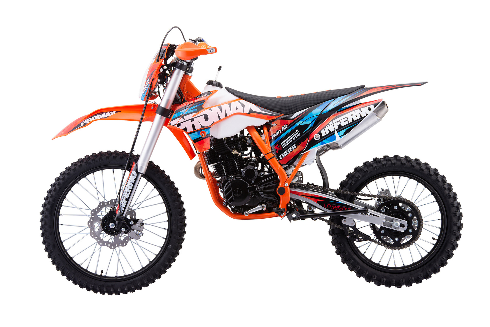 Главная ... Эндуро PROMAX Кроссовый мотоцикл PROMAX INFERNO 380 (4 valves, 5 gears) оранжево - черный-голубой