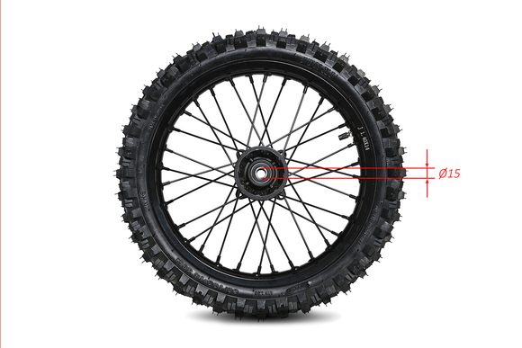 Главная ... Колеса в сборе Колесо в сборе для питбайка переднее R 14 (алюминиевое) ось 15мм (без тормозного диска)