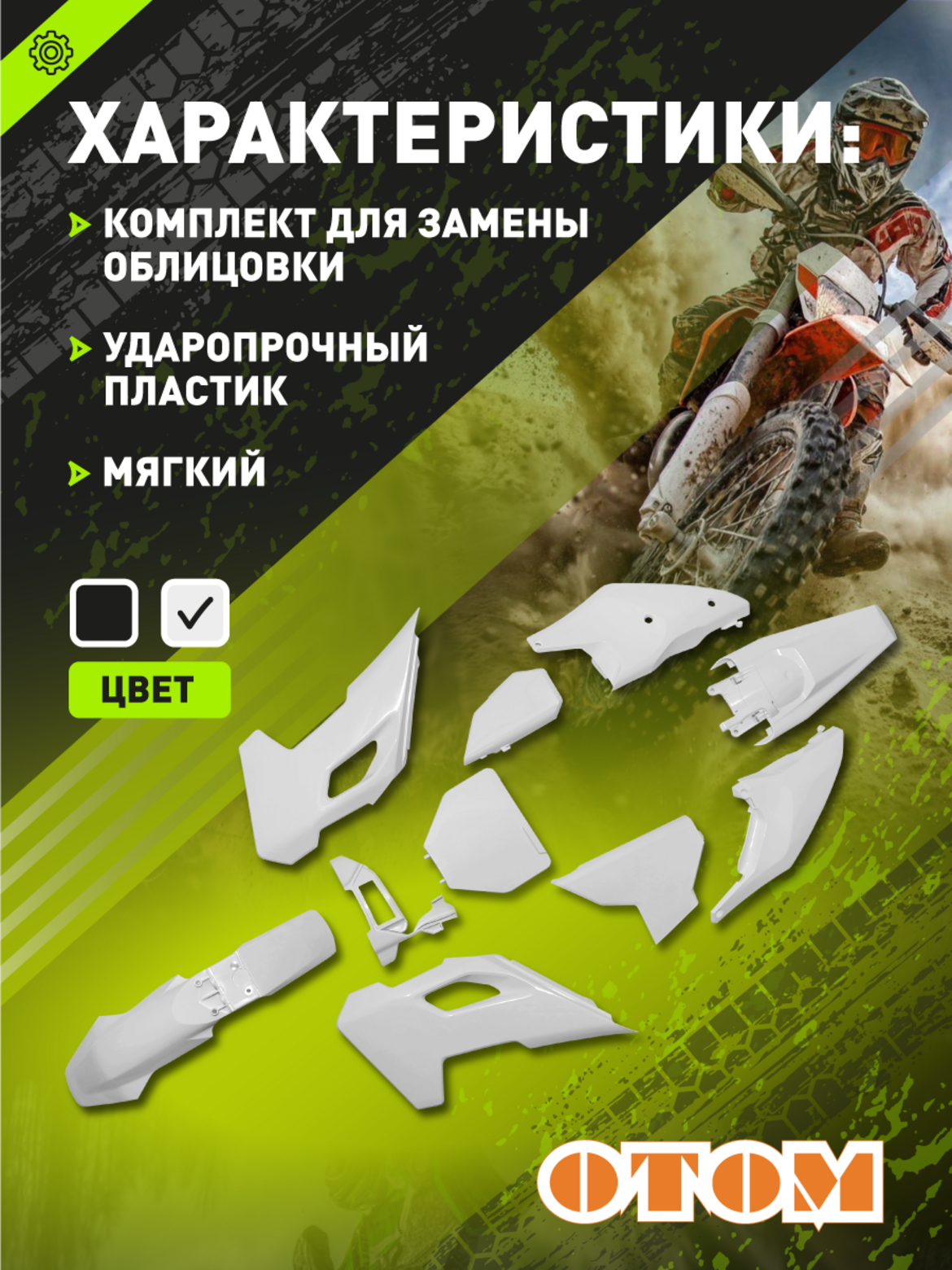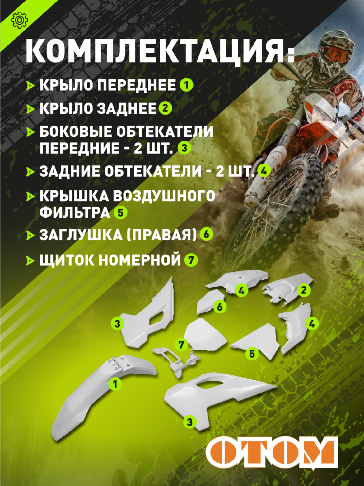 • Включает все основные элементы: переднее и заднее крыло, боковые обтекатели- на бак и задние, номер.