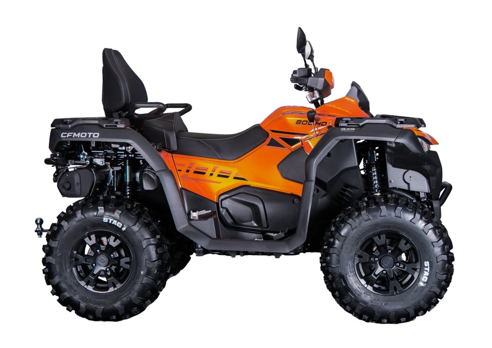 Такого 800-кубового квадроцикла вы еще не видели! CFORCE 800 HO EPS NEW на совершенно новой платформе третьего поколения G3 и в абсолютно новом дизайне с уникальными характеристиками! Усиленная подвеска, высокий клиренс, повышенная мощность, новая конфигурация, комфортная езда и удобство практического применения – и это далеко не все, чем обладает CFORCE 800 HO EPS NEW!Абсолютно новый внешний вид с оригинальной светодиодной оптикой никого не оставит равнодушным!70% компонентов модели CFORCE 800 HO EPS NEW подверглись полной модернизации и оптимизации, сделав ее идеальным выбором для настоящих ценителей путешествий! Удалось снизить сухую массу квадроцикла, но при этом увеличить прочность рамы.CFORCE 800 HO EPS NEW обладает тремя режимами работы двигателя и системой помощи при спуске по склону (DAC), обеспечивая динамичную езду и безопасное использование квадроцикла в работе и на отдыхе. Новая система EPS с возможностью выбора режимов работы позволяет райдеру более точно управлять квадроциклом без потери связи руля и колес.Для удобства, комфорта и лучшей управляемости в путешествиях на различных типах грунтов CFORCE 800 HO EPS NEW укомплектован резиной STAG в размере 27 дюймов.Этот квадроцикл создан идеальным для путешествий в любые уголки России!На CFORCE 800 HO EPS NEW допускается выезд на дороги общего пользования. Дополнительные преимущества:– Абсолютно новая платформа третьего поколения G3