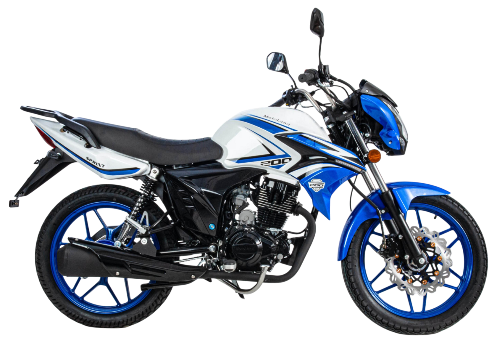 MOTOLAND SPRINT 200 - отличный вариант байка для тех, кто только решил приобщиться к мотокультуре и пересесть на двухколесную технику основательно, ведь он небольшого размера и легкий.Данный мотоцикл зачастую используется в автошколах для обучения учеников, ведь научиться водить на нем проще простого.Расход топлива 3,7л. на 100км.Мотоцикл оснащен бензиновым 200-кубовым двигателем 164FML с балансиром ,карбюраторной системой питания PZ30. Охлаждается движок воздушным путем. Механическая коробка передач пятиступенчатая. Для запуска двигателя имеется как кикстартер, так и электростартер.Работа подвески мотоцикла организована на базе стандартных компонентов: передней телескопической вилки и двух задних амортизаторов.Размер колес 18/18. Колесные диски литые