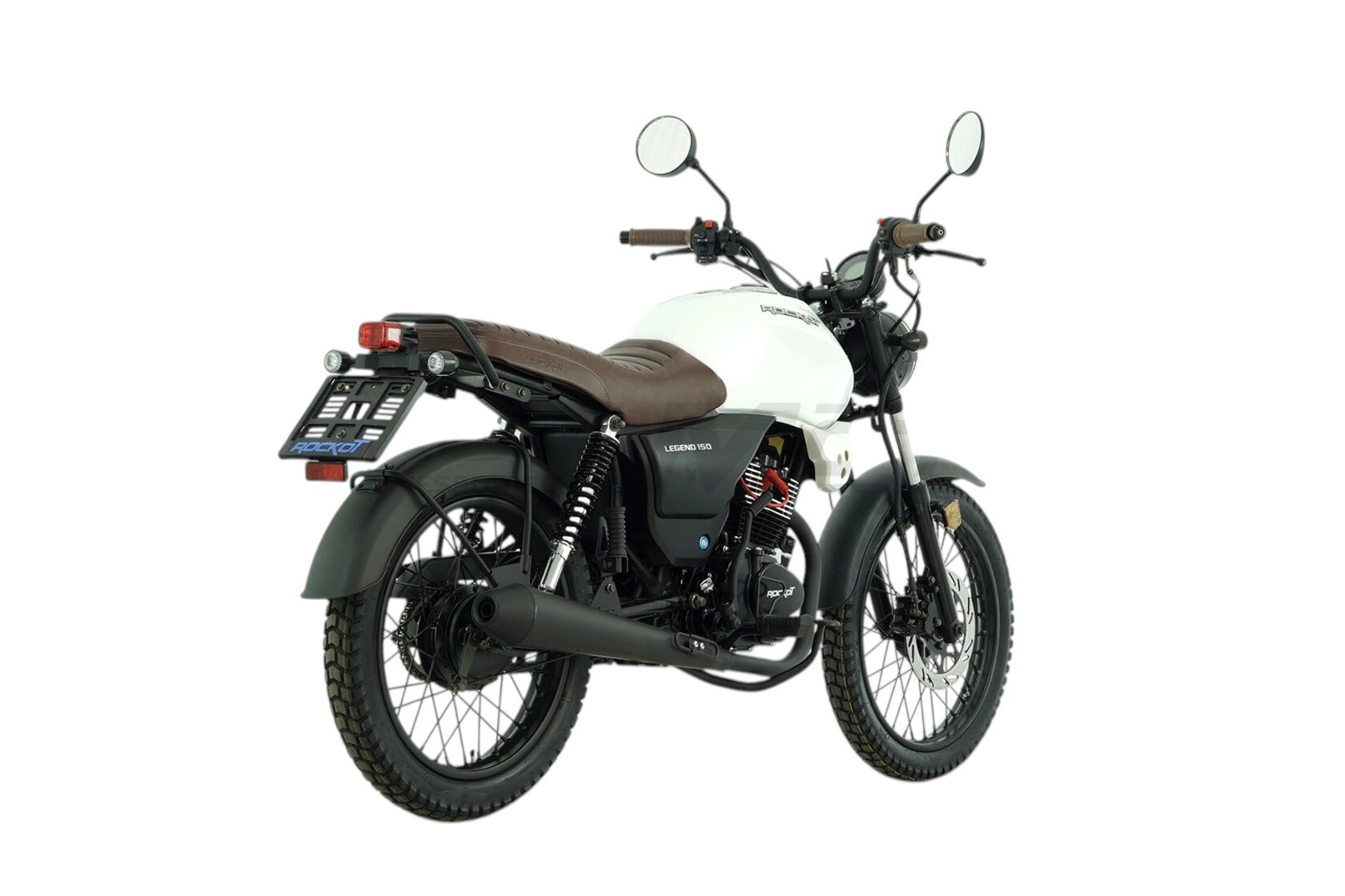 ROCKOT LEGEND 150 - классический дорожный мотоцикл, на создание которого команду специалистов Rockot-Motors вдохновили дорожные ретро-мотоциклы. В итоге, с конвейера завода сходят стильные, аутентичные, классические мотоциклы, которые отличаются от ретро-байков современными органами управления и оборудованием.При создании мотоцикла ROCKOT LEGEND 150, было взято множество образов мотоциклов по типам: классик, скремблер, каферейсер. Для придания модели духа мотоциклетной промышленности 70-х годов прошлого столетия, было решено установить металлические крылья спереди и сзади.Что, как не глушитель и его форма, может охарактеризовать стиль мотоцикла? Поэтому модель LEGEND 150 обрела фирменный глушитель, чья форма в простонародье называется “огурец”.Фара головного света имеет классическую круглую форму, а также специальную металлическую решетку “паутинку”, которая была так популярна раньше на мотоциклах класса типа скремблер.Сзади установлен округлый прямоугольный фонарь, выполненный в общей стилистике мотоцикла. Также, антуражность концепции мотоцикла достигается благодаря применению маленьких указателей поворотов круглой формы.Пожалуй, самое необычное решение, которое позволило показать, что это настоящий “железный” мотоцикл - обточенные, шлифованные ребра охлаждения на головке цилиндра. Современная LED приборная панель выполнена в круглом корпусе, что издали не отличает ее от привычного, классического спидометра.Мотоцикл ROCKOT LEGEND 150 выпускается в двух цветах: с белым глянцевым и черным матовым топливными баками. Но это не все их отличия. Модель белого цвета в своей комплектации имеет коричневое сиденье из эко кожи и коричневые ручки руля. Во второй расцветке мотоцикл выполнен полностью в черном цвете.LEGEND 150 оснащен ста пятидесяти кубовым четырехтактным двигателем CG150 производства Zongshen, который развивает мощность 11 лошадиных сил. Данная модель двигателя отлично зарекомендовала себя благодаря высокому уровню надежности, легкости в обслуживании и высоким показателям мощности и крутящего момента. Все это обусловлено конструкцией системы ГРМ с нижним распредвалом.Коробка передач - пятиступенчатая с многодисковым сцеплением мокрого типа. За образование топливной смеси отвечает карбюратор PZ27, который позволит добиться от двигателя максимальных мощностных характеристик и при этом останется экономичным. Как принято на мотоциклах типа “скремблер”, дорожный мотоцикл ROCKOT LEGEND 150 оснащается длинноходной подвеской. Спереди установлены классические амортизаторы длиной 700 мм и толщиной 31 мм. Сзади мотоцикл оборудован двумя пружинно-гидравлическими амортизаторами. Хоть мотоцикл и не развивает высокую максимальную скорость (до 110 км/ч), он оборудован дисковым гидравлическим тормозом спереди. И барабанным механическим тормозом сзади. Передний двухпоршневой тормозной суппорт работает в паре с 240 мм тормозным диском. Спереди и сзади установлены 18-ти дюймовые диски с универсальными покрышками размерностью 2.75-18 и 3.00-18. Прочные стальные спицевые диски окрашены в черный матовый цвет..