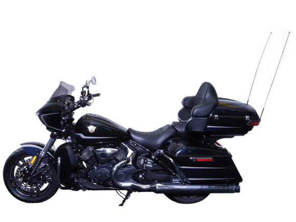 GROZA Traveller 800 – роскошный круизёр, который создан для суперкомфортного перемещения на любые расстояния. Он имеет современный, брутальный дизайн с мощным обтекателем, характерной светодиодной головной оптикой и монументальными хромированными глушителями.Двухцилиндровый V-образный двигатель объёмом 800 см3 мощностью 61 л.с. при высоких показателях динамики и отличном крутящем моменте способен разгонять аппарат до 160 км/ч. Привод на ведущее колесо осуществляется ремнём знаменитой марки USA Gates. Жидкостная система охлаждения не допустит перегрева мотора даже на самых непростых маршрутах.На мотоцикл установлены литые алюминиевые диски диаметром 17 дюймов. Ширина передней покрышки – 140 мм, задней – 200 мм. С неровностями дороги эффективно справляются телескопическая вилка перевёрнутого типа спереди и маятник с двумя амортизаторами сзади. Вилка имеет 7 ступеней регулировки, что обеспечивает лёгкую перестройку на различные режимы езды. Для всего класса круизёров такая опция – большая редкость. Эффективное и безопасное замедление с любых скоростей обеспечивают гидравлические дисковые тормоза спереди и сзади от компании NISSIN.Мотоцикл оснащён мощной музыкальной системой с четырьмя 6,5-дюймовыми динамиками, двумя штатными видеорегистраторами спереди и сзади, тремя грузовыми кофрами общим объёмом 120 литров, развитой спинкой для пассажира, массивными дугами и “валенками”, снабжёнными открывающимися вентиляционными шторками и небольшими грузовыми ёмкостями. Из других приятных мелочей в допоборудовании мотоцикла стоит выделить подогрев ручек, датчики давления в шинах и USB-порт.Мотоцикл сочетает в себе отличные технические характеристики, богатое оснащение, комфорт и надёжность, что позволяет вам ощутить настоящую свободу, отправившись на нём в любое путешествие.