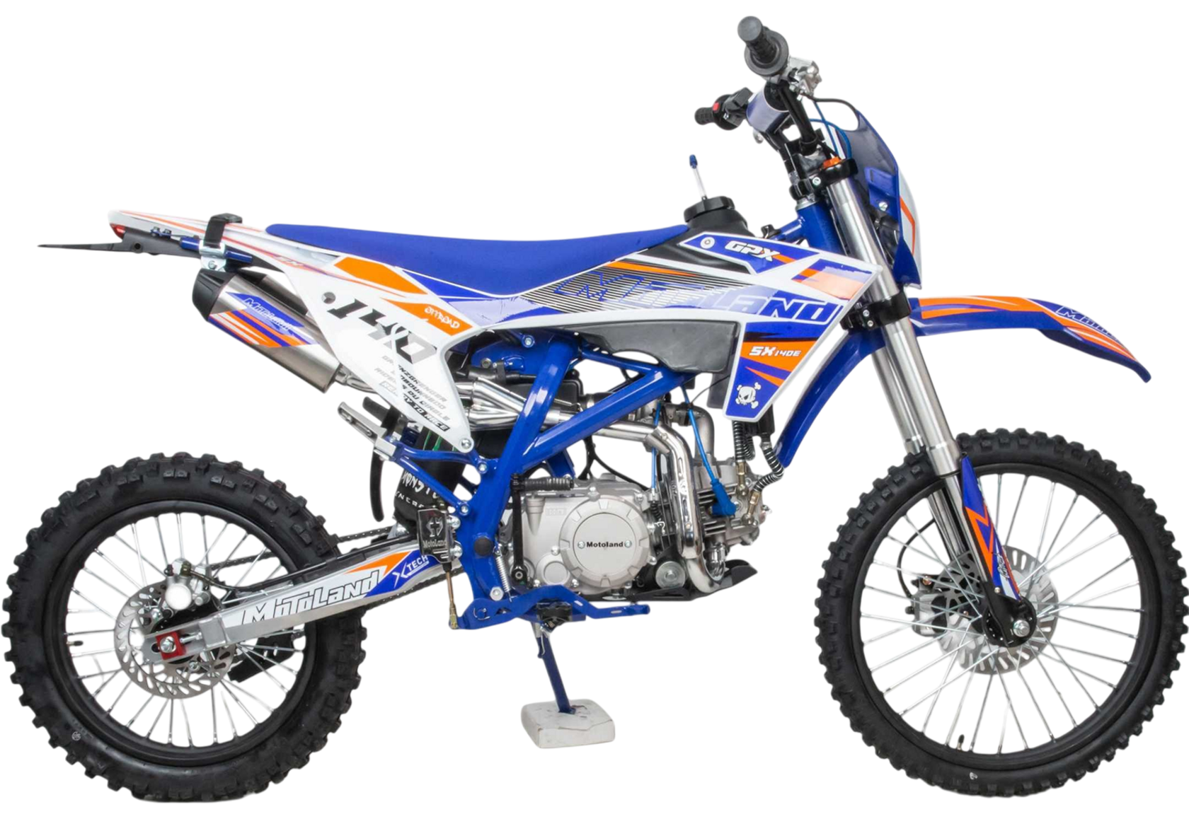 Встречайте долгожданную новинку SX на 140 куб. Питбайк Motoland SX 140 E 19/16 идеален для поездок по грунтовым дорогам и бездорожью. Хорошо чувствует себя на мягком и среднем грунте, разгоняется до 90 км/ч. Оснащён спортивными траверсами и амортизаторами с регулировкой. весит всего 75 кг.Питбайк прост в управлении и не требует специального ухода, подойдёт как новичкам, так и любителям мотокросса.У питбайка отличный узнаваемый дизайн. Конструкция подчёркивает неуступчивый спортивный характер, который не остановится ни перед одним препятствием.Комбинированный прочный пластик не ломается при сгибании.Передняя подвеска — телескопическая вилка перевёрнутого типа с регулировками, которая отлично подходит для преодоления ям, и других неровностей плохих дорог или их отсутствия. Задняя подвеска маятниковая с моноамортизатором тоже с регулировкой.Питбайк оснащён карбюратором NIBBI PE 22 и одноцилиндровым четырёхтактным двигателем с воздушно-масляным охлаждением. Надёжный мотор 156 FMJ