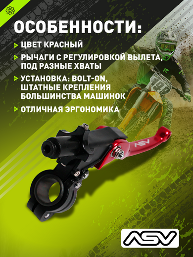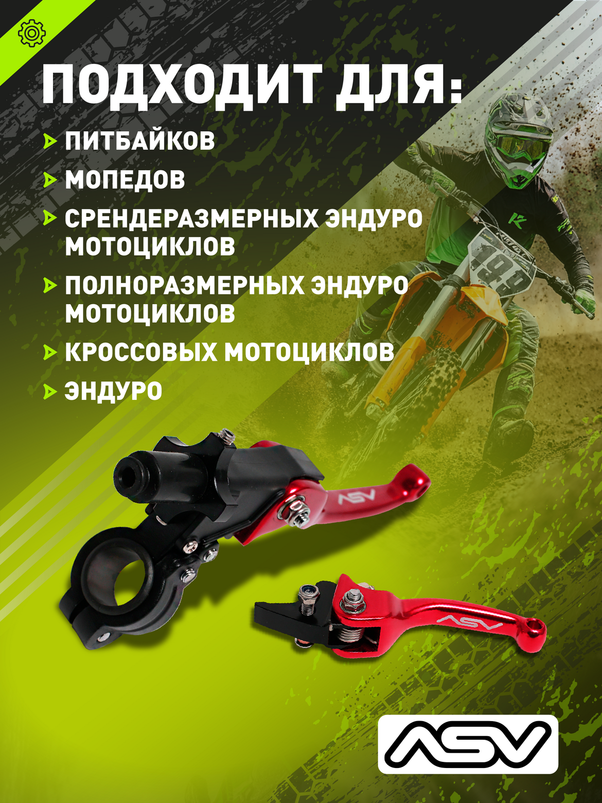 Главная ... Рычаги Комплект складных рычагов для питбайка и эндуро мотоцикла ASV CNC красные
