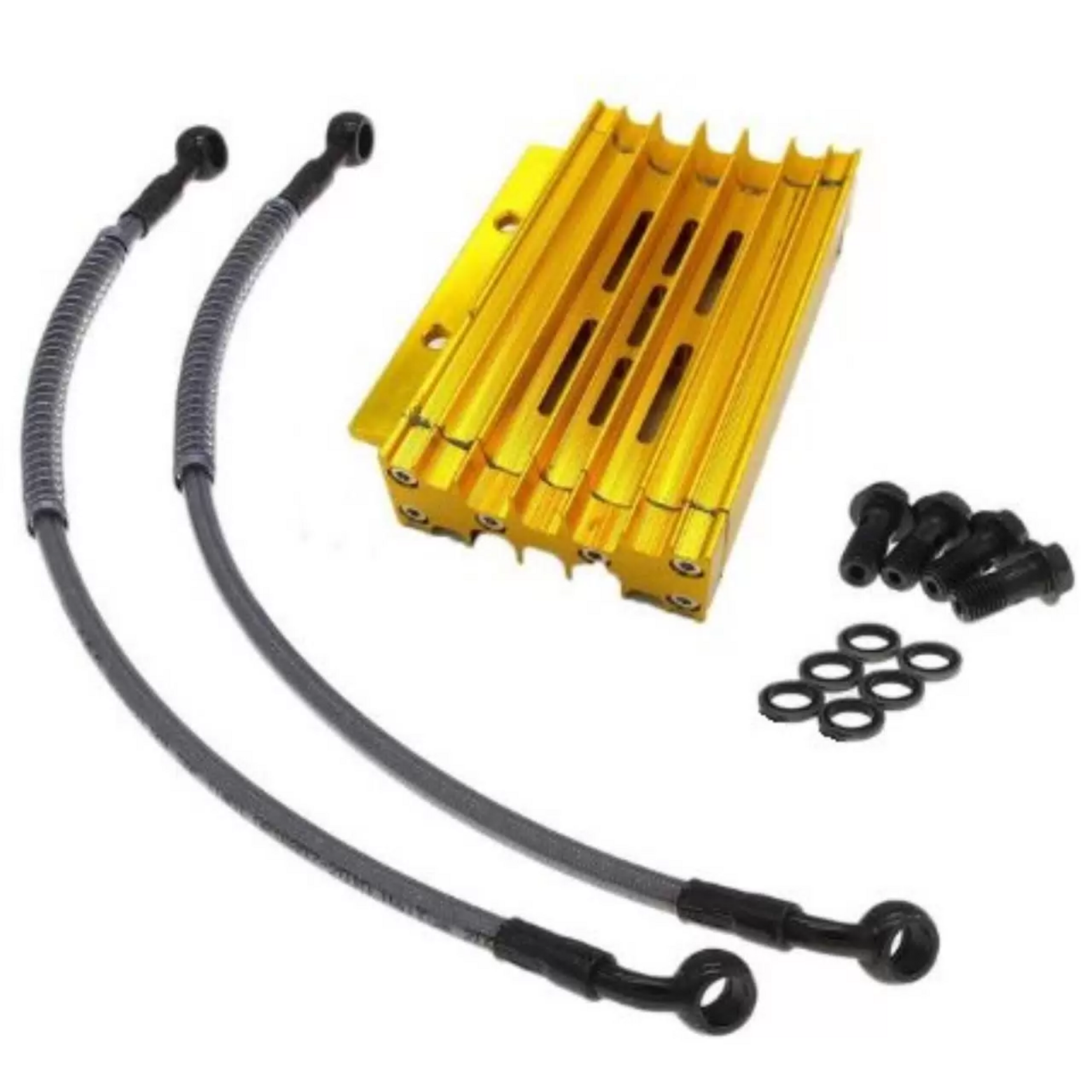 • Высококачественный комплект радиатора масляного охлаждения с корпусом из прочного CNC-алюминия, ярко-золотого анодированного цвета. Разработан для установки на 90% питбайков и мопедов с объёмом двигателя от 125 до 190 см³. Обеспечивает эффективное охлаждение масла, защищая двигатель от перегрева и продлевая его срок службы.