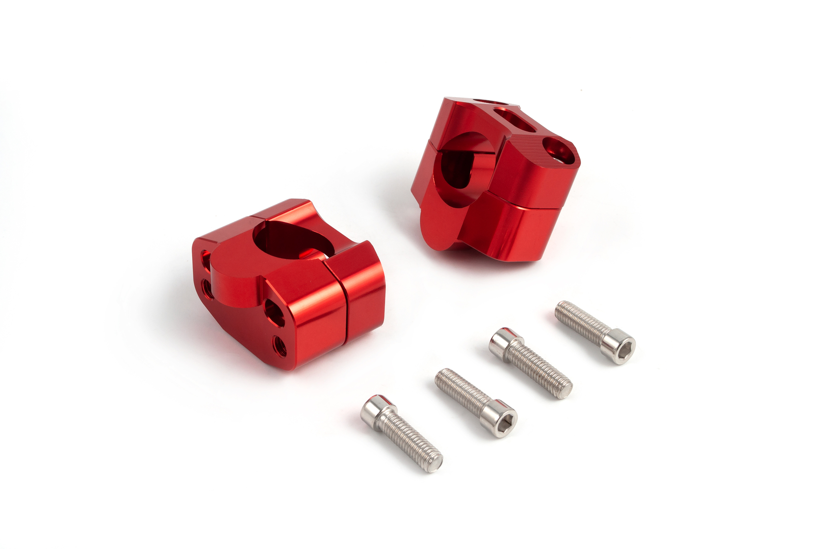 • Комплект переходников (проставок) красного цвета для установки руля диаметром 28 мм в стойки руля диаметром 22 мм. Выполняет двойную функцию: адаптирует посадочный диаметр и поднимает руль на 20 мм, улучшая эргономику управления. Идеальное решение для эндуро мотоциклов и питбайков.