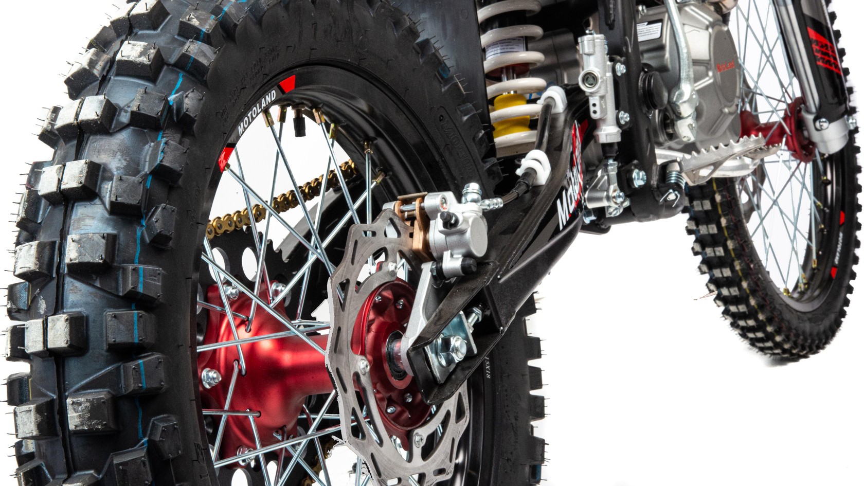 Мотоцикл Motoland WR250 - имеет мощный 4-х тактный двигатель 172FMM-3A 250 см3, на пике выдающий мощность 21 лс.. Это позволит выжать из мотоцикла максимум. На мотоцикле установлен карбюратор NIBBI PE 30 с обогатителем на руле. Улучшенная подвеска GPX Professional series, оснащена настройкой заднего амортизатора и прогрессии. Запуск двигателя производится как электростартером, так и кикстартером.Педаль п/п CNC складная, специально спроектированная для 172-го двигателя. Позволяет легко переключать передачи в любых режимах. Рама и маятник с двухсторонними рёбрами жёсткости.Глушитель с Power Bomb c карбоновой накладкой.На данной модели установлены: усиленная литая траверса, руль 28/22 мм переменного сечения с подушкой, защита рук, регулировка рычагов тормоза, увеличенные крылья, сидение с противоскользящим покрытием, цветная инверсионная панель приборов.Motoland WR250 - имеет мощный 4-х тактный двигатель 172FMM-3A 250 см3, на пике выдающий мощность 21 лс.. Это позволит выжать из мотоцикла максимум. На мотоцикле установлен карбюратор NIBBI PE 30 с обогатителем на руле. Улучшенная подвеска GPX Professional series, оснащена настройкой заднего амортизатора и прогрессии. Запуск двигателя производится как электростартером, так и кикстартером.Педаль п/п CNC складная, специально спроектированная для 172-го двигателя. Позволяет легко переключать передачи в любых режимах. Рама и маятник с двухсторонними рёбрами жёсткости.Глушитель с Power Bomb c карбоновой накладкой.На данной модели установлены: усиленная литая траверса, руль 28/22 мм переменного сечения с подушкой, защита рук, регулировка рычагов тормоза, увеличенные крылья, сидение с противоскользящим покрытием, цветная инверсионная панель приборов.