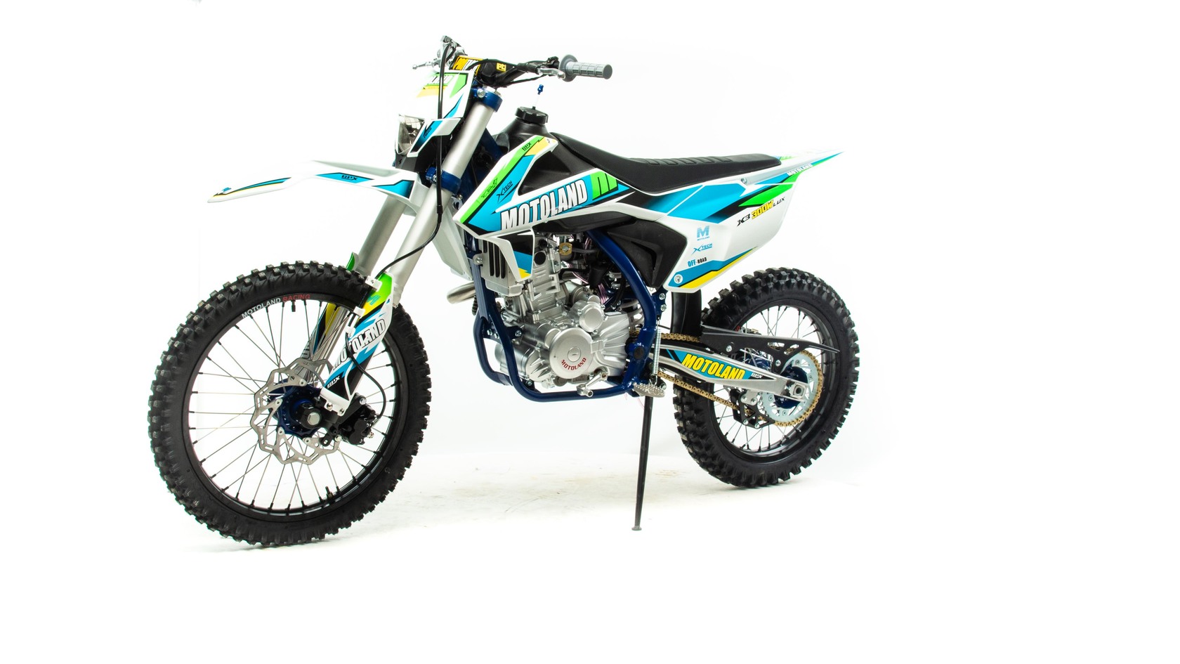 MotoLand X3 300W LUX Новинка 2022 года.Надёжная техника из самых популярных компонентов оснащена Двигателем ZONGSHEN 174FMM с кикстартером и электростартером Мощностью 24 Л.С. на двигателе установлен Карбюратор NIBBI .Это полноразмерный кроссовый мотоцикл его база по осям составляет 1430 мм., и габаритами 2180х800х1300 мм. Высота по седлу составляет 940 мм., что по сравнению с Моделью XT 250 ST 21/18 ниже порядка 20 мм. Что позволяет комфортно себя чувствовать райдерам среднего роста.За счет сбалансированной базы мотоцикл имеет отличную управляемость, а конструкция рамы и особенности настройки подвески GPX способствуют максимальному поглощению неровностей дорожного покрытия, а так же усиленная прогрессия на игольчатых подшипниках.Алюминиевые обода c антибуксаторами, усиленными спицами и ступицами CNC. На кроссовой резине Yuanxing 80/100-21 / 100/90-18На мотоцикле установлена обновлённая тормозная система аналог «brembo» с медными колодками , что обеспечивает отличные тормозные характеристики. Особенностью заднего тормоза является, лапка верхнего расположения с эксцентриковой регулировкой.Выпускной патрубок с резонатором Power Bomb имеет крепления на пружинах для снижения вибрации. Глушитель с уникальным дизайном прямоточного типа, полностью алюминиевый для облегчения веса.