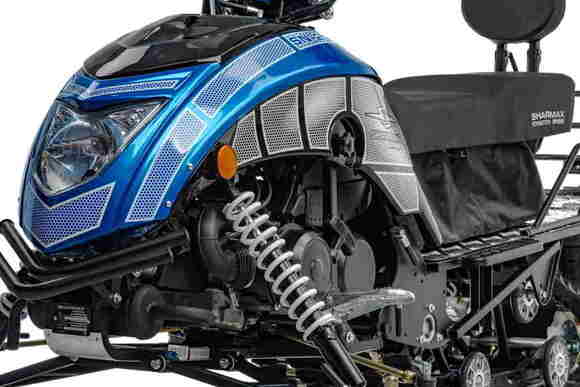 Инновации и передовые технологии, которые воплотил в данной модели снегоходов SN-210 Forester известный на мировом рынке машиностроительный концерн Sharmax достойны высших похвал. Данный снегоход обладает рядом преимуществ, что выделяет его среди других моделей, представленных на рынке. Sharmax Forester при загрузке в 150кг способен с легкостью развивать максимальную скорость в 55 км/ч по среднему снегу. Этому способствует мощный резино-тканиевый армированный гусеничный трак шириной 380 мм, обеспечивающий давление на снежный покров в глубину до 880мм и двигатель объемом 200 см³, который выдает 11 лошадиных сил. При небольшом весе снегохода всего в 130кг транспортировка техники к месту использования будет достаточно простой. А запаса хода снегохода Sharmax Forester при полном баке без дозаправки и на максимальных оборотах хватит на 80-90 км пути.Sharmax Forester в базовой комплектации оборудован информативной LCD панелью, способную предоставить подробную информацию даже при ярком солнечном свете, что весьма удобно на пересеченной местности. Также снегоход оборудован вместительным багажником и дополнительными креплениями по обеим сторонам и сзади для крепления груза и буксировки саней.Снегоход Sharmax очень маневренный и довольно простой в управлении. С ним справится даже новичок.