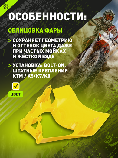 Облицовка фары эндуро KTM 2016-2023 K5/8 Желтая pitbikemarket.ru