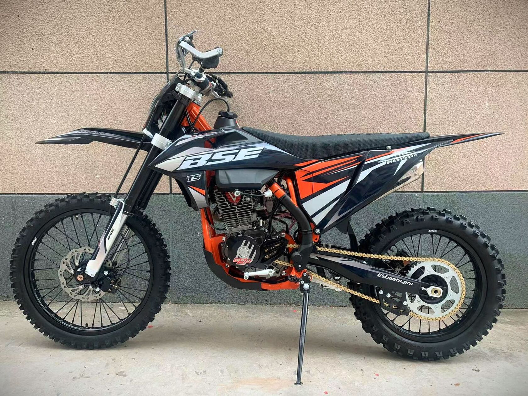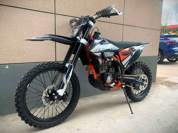 Новинка 2023 года от BSE - модель Т5 из абсолютно новой Т-серии!Наша гордость – мотор TYAN TYX300, который уже отлично зарекомендовал себя на модели Z11. Данный мотор является эксклюзивным для бренда BSE на российском рынке. Официально только у BSE Russia есть разрешение на установку мотора TYAN TYX300 на свою продукцию.Ещё одна особенность модели Т5 - абсолютно новая рама, которая полностью соответствует всем стандартам самого известного австрийского бренда мотоциклов для кросса и эндуро – KTM. Единая геометрия, эргономика, пропорции и углы вылета вилки. Высококачественная сталь, малый вес и большой запас прочности, идеальная развесовка. Мотоцикл оснащен легким алюминиевым подрамником, системой прогрессии и пластиковой защита мотора. Установлен новый тип пластика - прочный, легкий и современный. Колесная база в 1460 мм добавляет отменную маневренность.T5 оборудован фирменной заводской спортивной подвеской BSE Mojo Racing. Подвеска с большими ходами имеет полный диапазон регулировок и помогает отрабатывать даже самые жесткие приземления, с лёгкостью "глотая" все неровности. Подвеску легко настроить под любой рельеф, любую трассу и стиль езды. Вы ощутите результат, когда будете сокращать секунды круг за кругом! Особое внимание было направлено на снижение веса всей подвески.Разработка подвески BSE Mojo Racing производилась опытными инженерами-подвесочниками завода, а настройка - под чутким контролем заводской спортивной китайской командой BOSUER. Спереди установлена полностью регулируемая вилка «перевертыш» BSE Mojo Racing c перьями диаметром 53/58.5 мм, 930 мм. Сзади установлен полностью настраиваемый моноамортизатор BSE Mojo Racing 480 мм.На T5 установлен топливный бак на 8 л, мощная тормозная гидравлическая система с дисками диаметром 240 мм, звезды 13t – 49t, «зубастые» покрышки Carrystone 80/100-21 спереди и 110/90-18 сзади. Мотоцикл оснащается полностью светодиодной фарой головного света, грипсами и ручкой газа Nibbi Racing, цепкой шкуркой сиденья.Легкий (сухая масса 120 кг), прекрасно сбалансированный, мощный мотор. Отточенная управляемость. Подходит для новичков, а также спортсменов в дисциплинах эндуро, хард-эндуро, супер-эндуро, мотокросс.