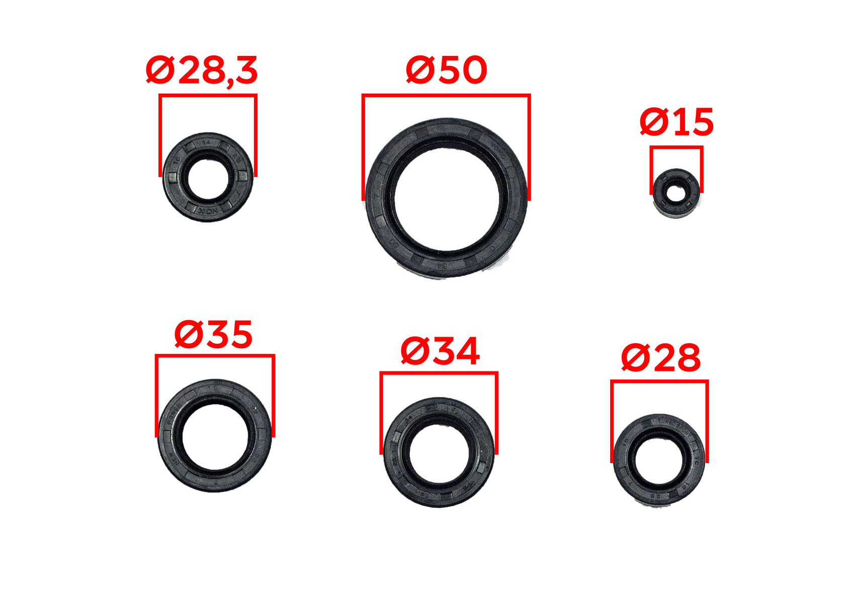Размеры сальников в комплекте: