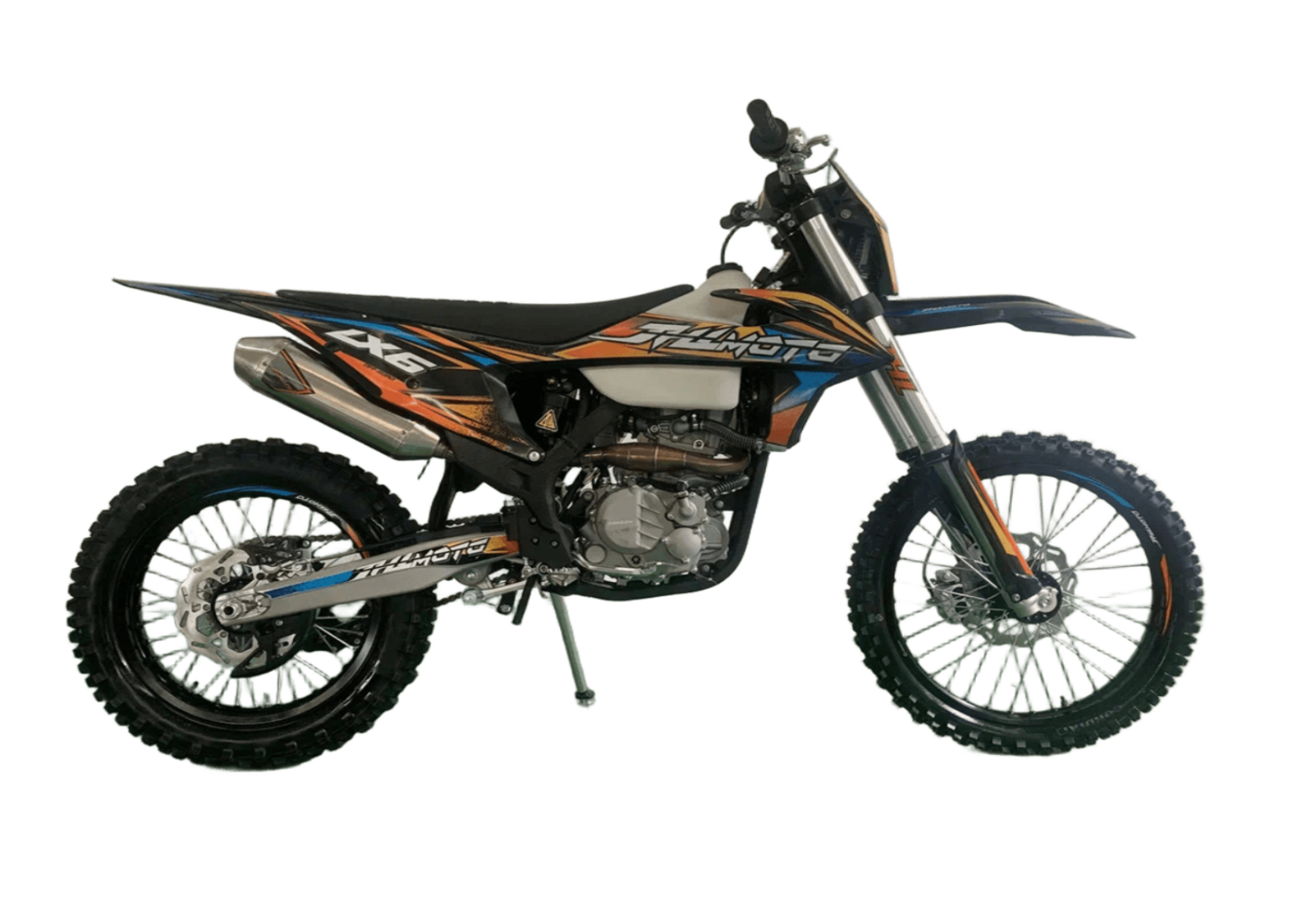 Это мотоцикл «Эндуро» используется для перемещения по пересеченной местности, преодоления бездорожья и участия в различных спортивных активностях.Особенности мотоцикла JHL LX5 YBS300 (176MN): Байк, как и его коллеги по серии, выполнен на основе новейшего двигателя Loncin 176MN. Тяга на малых оборотах помогает мотоциклу легко преодолевать препятствия, маневрировать, совершать прыжки, двигаться по пересеченной местности, участкам с влажным и топким грунтом. Рама на основе хромированной стали с добавками молибдена, покрыта раптором. Это идеальная защита от коррозии. Электроника – работает на литий-ионном аккумуляторе, усиленная влагозащита позволяет двигаться в туманную, влажную погоду. Гонщик может не бояться дождя, неожиданного купания в луже при прохождении трассы. Трансмиссия – (1-N-2-3-4-5) – пять передач, поэтому в названии байка присутствует спецификация LX5. Колесные диски – на основе сплава алюминия и силиция – прочные и легкие. Именно такой выбор инженеров позволил уменьшить вес данной модели. А про прочности диски не уступают тем, что устанавливают на легендарные KTM. Пластиковые элементы KTM 23 – широко используются в мото индустрии. Они отличаются повышенной прочностью, легко ремонтируются, при необходимости подлежат замене. Проблемы с поиском запчастей отсутствуют.