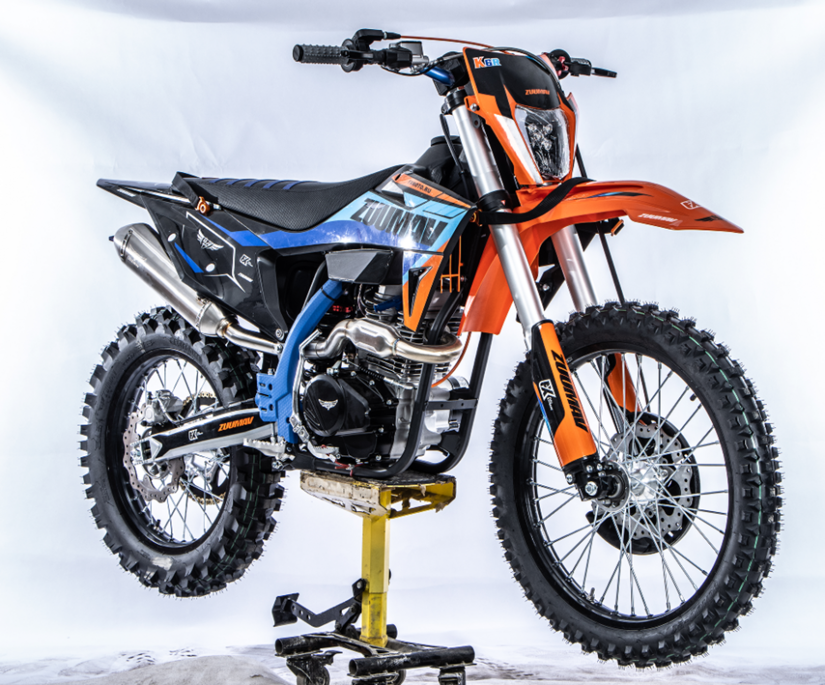 Мотоцикл кроссовый / эндуро Zuumav (Зуумав) K6R - это мощный и надежный транспорт для любителей экстремальной езды. Модель оснащена хромомолибденовой рамой, которая обеспечивает высокую прочность и долговечность. Двигатель LONCIN 250R 4Т/ 4 клапана баланс вал, мощностью 22 л.с., позволяет развивать высокую скорость и обеспечивает отличную тягу. Коробка передач 5-МКПП обеспечивает плавное переключение передач, что делает езду комфортной и безопасной. Воздушное охлаждение двигателя и электростартер делают запуск мотоцикла легким и быстрым. Выхлопная система из нержавеющей стали с резонатором и глушитель из нержавеющей стали обеспечивают чистый звук и долгий срок службы. Алюминиевый руль 6061/28/22 и складные рычаги тормоза и сцепления 360 обеспечивают удобство управления. Короткоходная ручка газа позволяет быстро реагировать на изменение скорости. Счетчик моточасов с влагозащитой и обода Алюминиевые 6063 усиленные обеспечивают надежность и долговечность. Передняя вилка перевернутого типа FXS 41/51/54-860mm регулируемая и задний амортизатор FXS 450mm с прогрессией регулируемый обеспечивают комфортную езду даже по неровным дорогам. Черный толстостенный топливный бак емкостью 6 литров и карбюратор ZUUMAV PWK 34 обеспечивают длительное время работы без дозаправки. Звезды перед/зад 13-50 зубьев и защита ведущей звезды обеспечивают надежную передачу крутящего момента. Защита переднего тормозного диска, защита рамы, цепь 520 SFR, шины перед/зад 80х100-21, 120х100-18 off-road, антибуксаторы перед/зад, алюминиевая лапка КПП, веткорез на педали тормоза, диодная фара головного света с ходовыми огнями, влагозащищенная проводка, рифленое сиденье, щиток номера, комплект жиклеров, USB, стропы - все это делает мотоцикл Zuumav (Зуумав) K6R идеальным выбором для тех, кто ищет надежность, мощность и комфорт в одном мотоцикле.