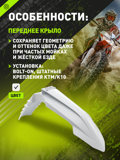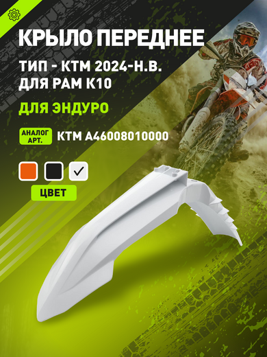 Крыло переднее на эндуро KTM 24г. (рама K10) белое pitbikemarket.ru