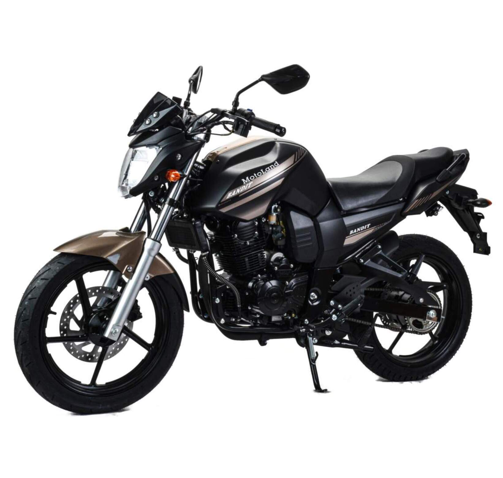 Мотоцикл Motoland BANDIT 300 является классическим представителем семейства дорожным мотоциклов. При этом он обладает всеми чертами мощного сити-байка необходимыми для комфортного передвижения как по городу, так и по шоссе.Стальная рама, объем топливного бака 18 литров. Расход топлива 3 л. на 100кмПодвеска передняя: Телескопическая. Подвеска задняя: моноамортизатор.Колесные диски алюминиевые, размер колес — 17 дюймов. Размер резины (перед / зад): 100/80/17 140/60/17 Зеркала, крепление под номер, подножки второго пассажира. Тормоза дисковые. Мягкое сиденье, обшивка из кож-замаФара, электростартер, замок зажигания, АКБ, поворотники, стоп-сигнал, электронная приборная панель.Двигатель 175FMM бензиновый с воздушно-масляным охлаждением, его рабочий объем - 300 кубов, мощность 25 л.с. Коробка передач - механическая, 5-ступенчатая, знакомая всем водителям по автошколе, а потому разобраться не составит труда.