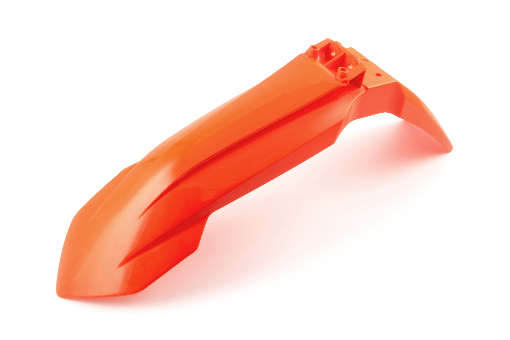 • Оранжевое переднее крыло для эндуро мотоциклов на базе KTM 2017-2023 года и аналогичных моделей с рамой K8. Выполнено из прочного ударопрочного пластика, точно повторяющего тип KTM 2017-2023. Полный аналог оригинального крыла KTM с артикулом 79008010000. Деталь защищает байк от грязи, камней и воды, устанавливается на штатные крепления без доработок.