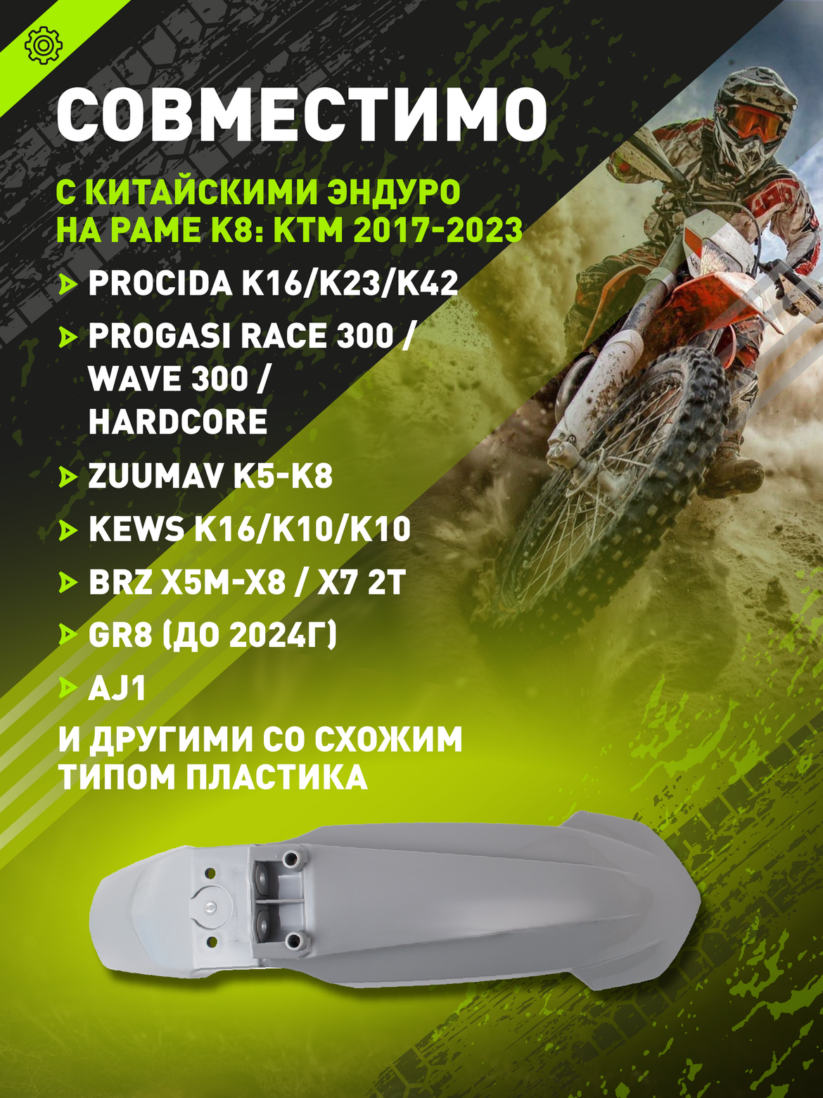 • • Универсальность — подходит для большинства китайских эндуро на раме K8