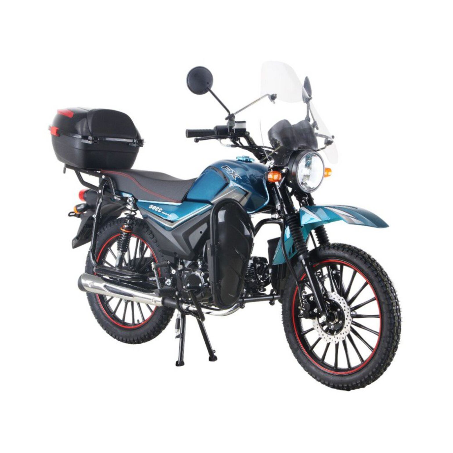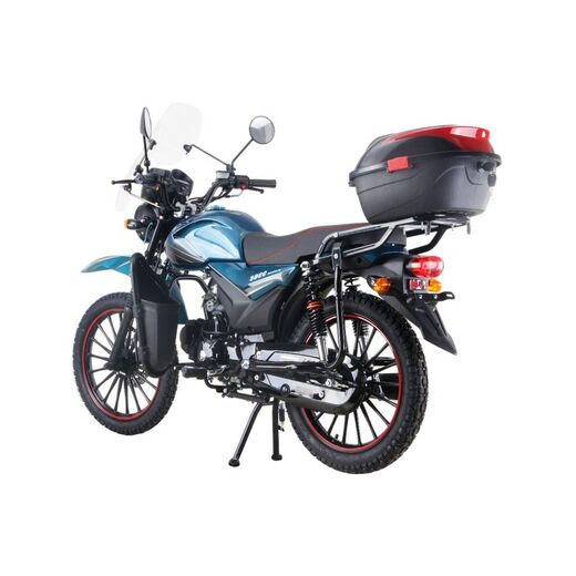 Мопед FXMOTO FX-50 — это идеальное сочетание современного дизайна, надежности и комфорта. Этот компактный транспорт создан для тех, кто ценит удобство в повседневной жизни и любит выезжать за город на природу. С его мощным двигателем объемом 125 куб. см (на базе ДВС 50 куб. см) и воздушным охлаждением, он легко справляется как с городскими улицами, так и с легким бездорожьем.Одним из главных преимуществ FXMOTO FX-50 является его современная оптика. Полностью диодная фара головного света, светодиодные задние фонари и поворотники обеспечивают отличную видимость в любое время суток, а также делают мопед заметным на дороге. Ветровое стекло защищает от ветра и грязи, делая каждую поездку более комфортной.Модель оснащена увеличенным топливным баком, что позволяет реже останавливаться для заправки и наслаждаться длительными поездками. Для дополнительного удобства предусмотрен USB-разъем, который позволит заряжать ваши гаджеты прямо в пути. Кофр и дополнительные карманы на передней дуге помогут организовать пространство для хранения вещей, будь то покупки, инструменты или личные принадлежности.Дизайн FXMOTO FX-50 поражает своей современностью и функциональностью. Новые диски и обновленное переднее крыло не только улучшают внешний вид, но и обеспечивают лучшую защиту от грязи. Цветовая гамма включает пять вариантов: классический черный, яркий красный, глубокий синий, спокойный белый и уникальный оттенок морской волны. Каждый найдет цвет, который подчеркнет его индивидуальность.Безопасность всегда на первом месте. Мопед оснащен дисковым передним тормозом и барабанным задним, что гарантирует надежное торможение даже в сложных условиях. Современный электромеханический щиток приборов предоставляет всю необходимую информацию о состоянии мопеда, а шины размером 2,50/17 (передняя) и 2,75/17 (задняя) обеспечивают отличное сцепление с дорогой.FXMOTO FX-50 — это не просто мопед, это ваш надежный спутник в любой ситуации. Будь то ежедневные поездки на работу, учебу или отдых за городом, этот мопед справится с любой задачей. Его компактность, маневренность и экономичность делают его идеальным выбором для современного человека.