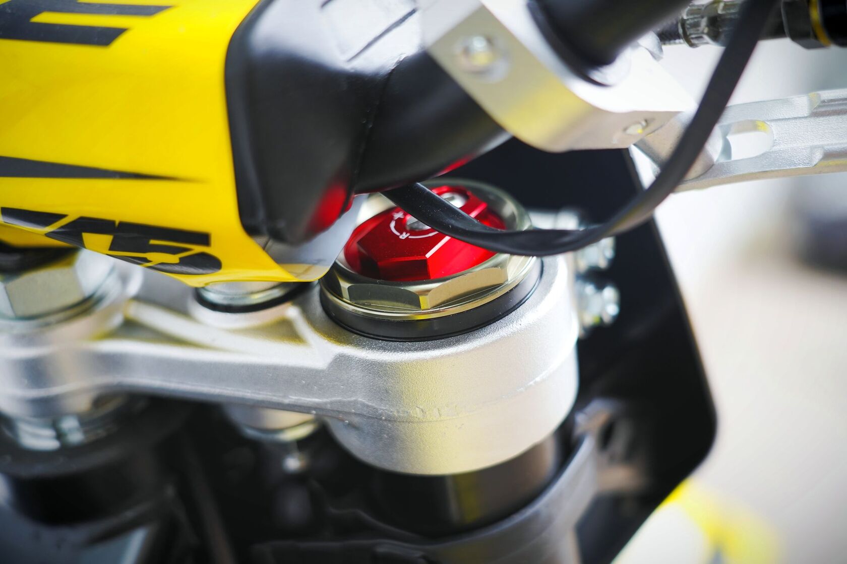 ДОПы Мощная тормозная гидравлическая система с дисками диаметром 240 мм, звезды 13t – 49t, «зубастые» покрышки Carrystone 80/100-21 спереди и 110/90-18 сзади. Мотоцикл оснащается полностью светодиодной фарой головного света, грипсами и ручкой газа Nibbi Racing, цепкой шкуркой сиденья