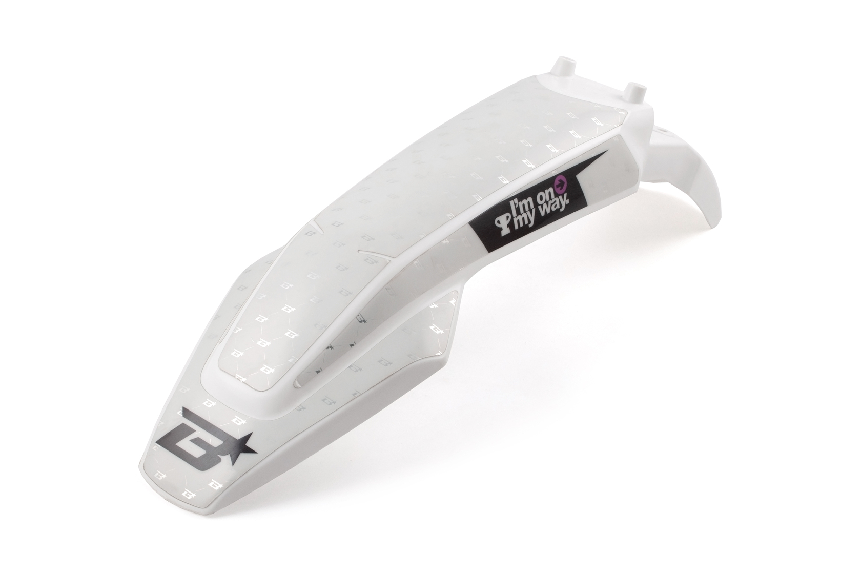 Переднее крыло принимает на себя первый удар стихии. Оно защищает радиаторы охлаждения от забивания глиной, а райдера — от летящих в лицо камней и потоков грязной воды. При жестком падении или ошибке на подъеме именно эта деталь часто страдает первой. Данное оригинальное крыло для мотоциклов BRZ серии H5 выполнено в популярном форм-факторе «Тип HS». Главная фишка этой позиции — деталь поставляется не просто в белом цвете, а с уже нанесенной стильной заводской графикой BRZ (паттерн, логотипы и надпись "I'm on my way"). Вам не придется тратить время и деньги на покупку и оклейку новых стикеров — крыло полностью готово к установке прямо из коробки!Технические характеристики: