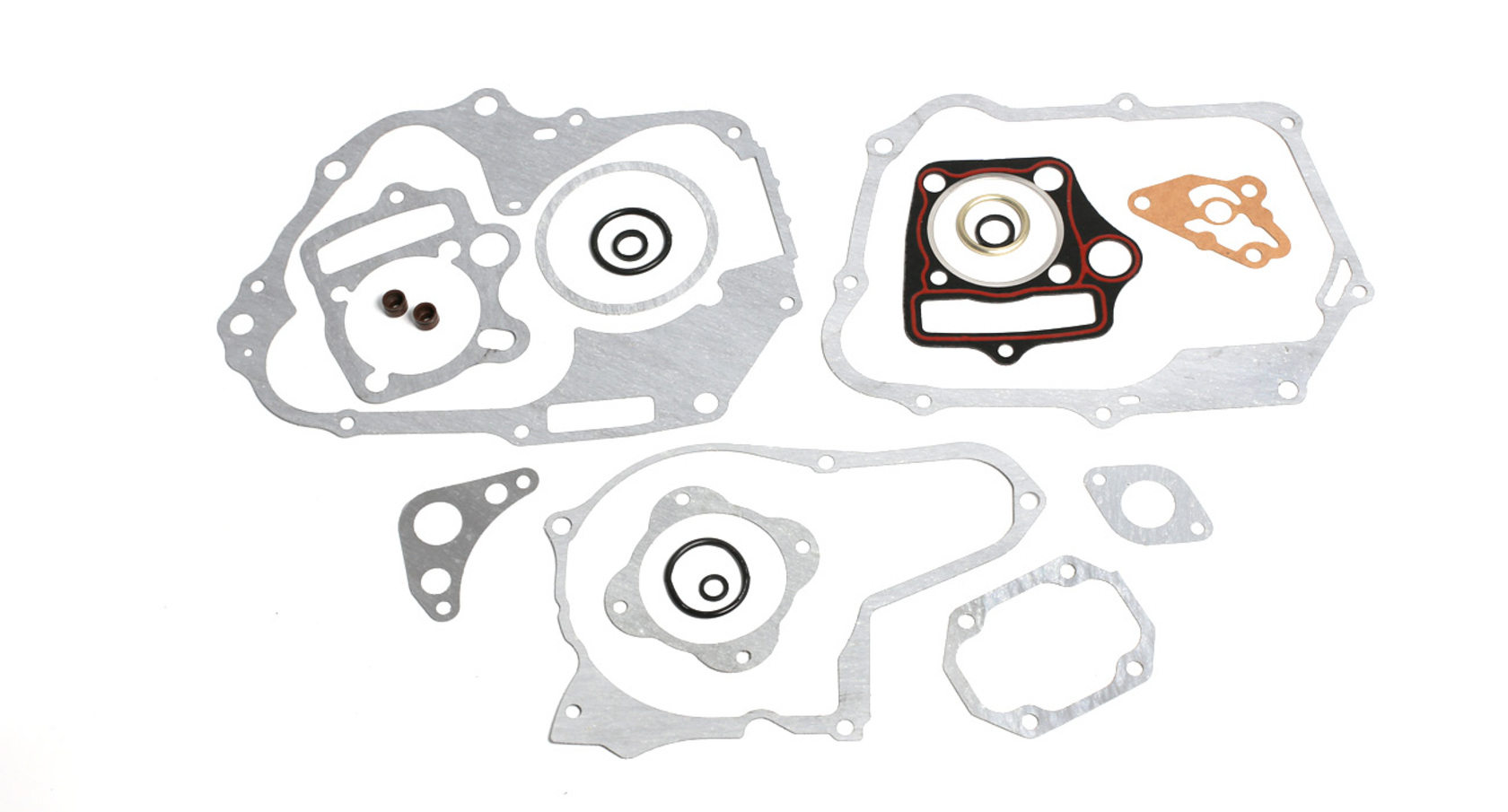 • • Комплектация: Прокладка ГБЦ (армированная), прокладка под цилиндр, прокладка центральных половинок картера, правой крышки (сцепления), левой крышки (генератора), масляной платы, впускного коллектора и выхлопной трубы.