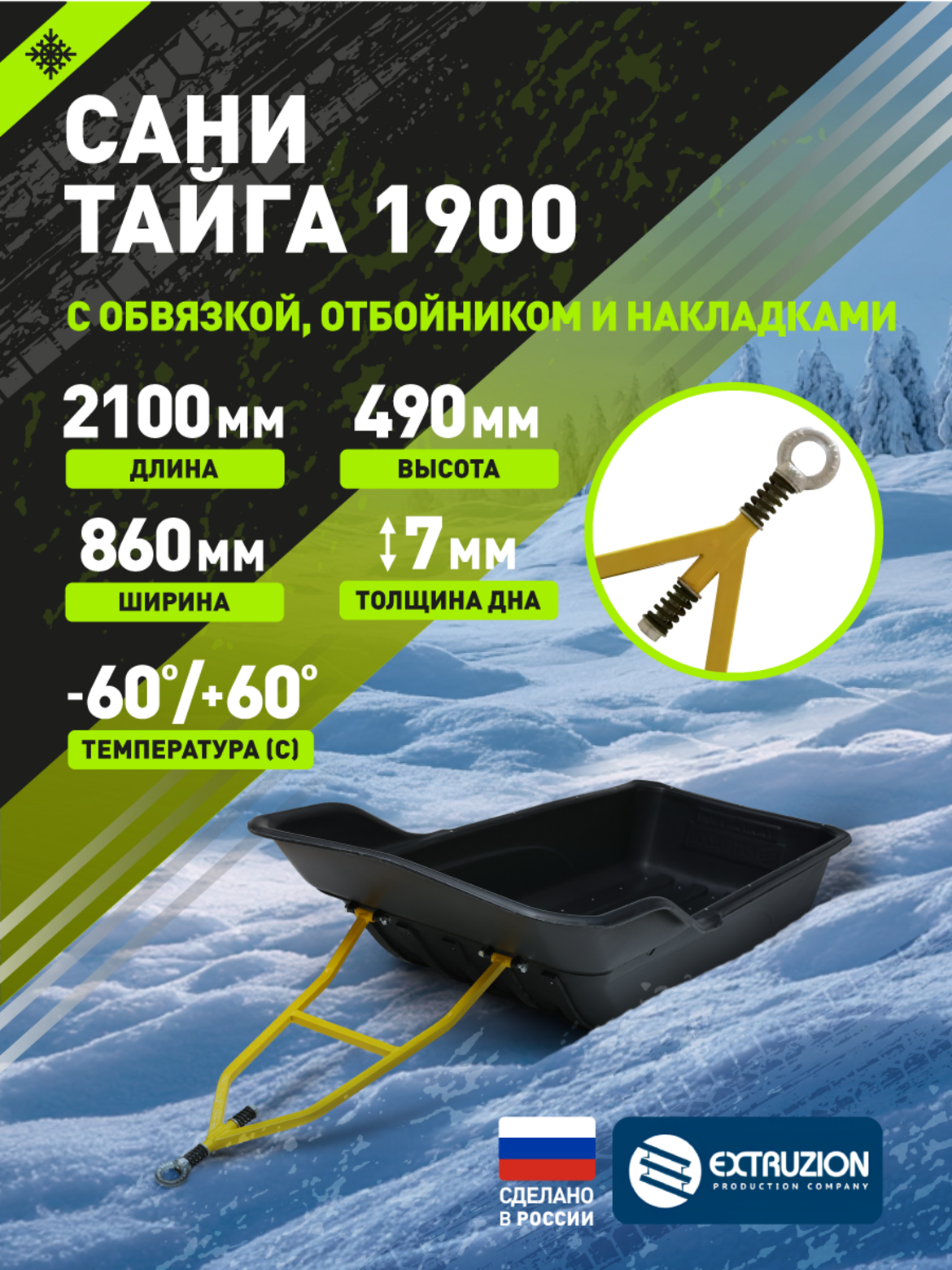 • Сани-волокуши «Тайга 1900» с обвязкой и полозьями