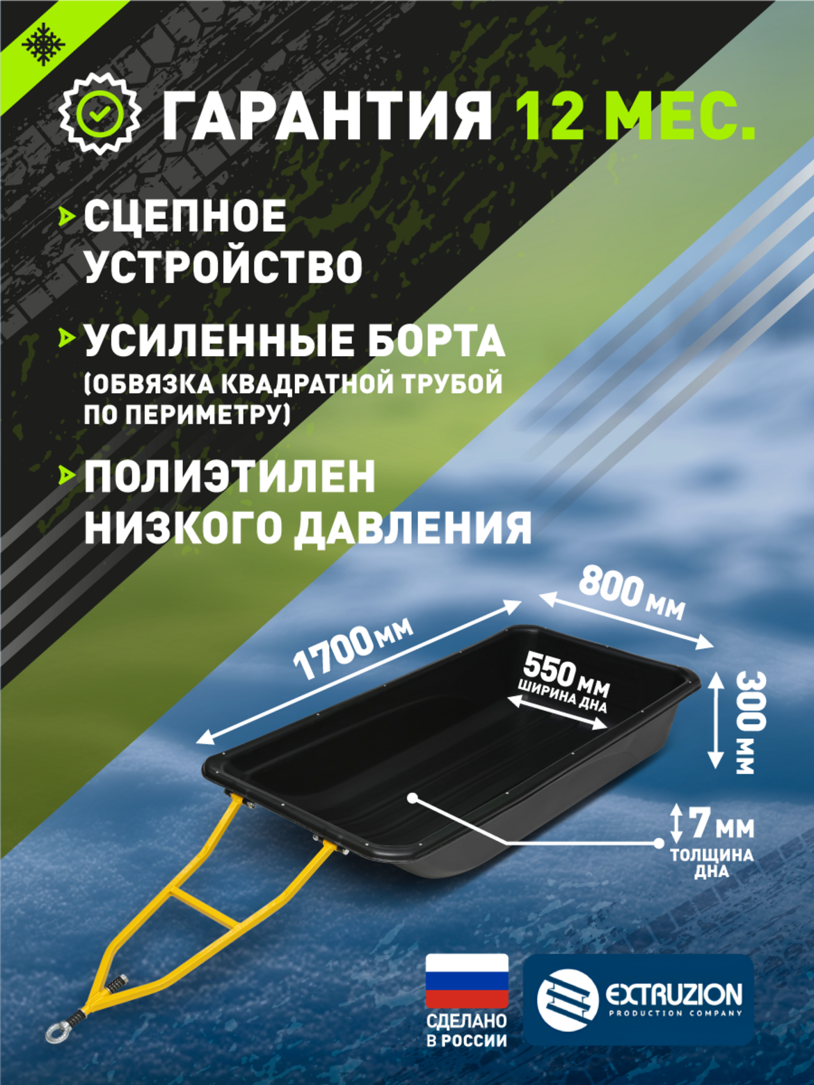 • Крупногабаритные сани-прицеп для профессионального использования с снегоходами и мотобуксировщиками. Один из самых вместительных вариантов в линейке для перевозки объемных грузов. Изготовлены из сверхпрочного ПНД с УФ-стабилизацией. Полная комплектация сцепным устройством и стропами обвязки.