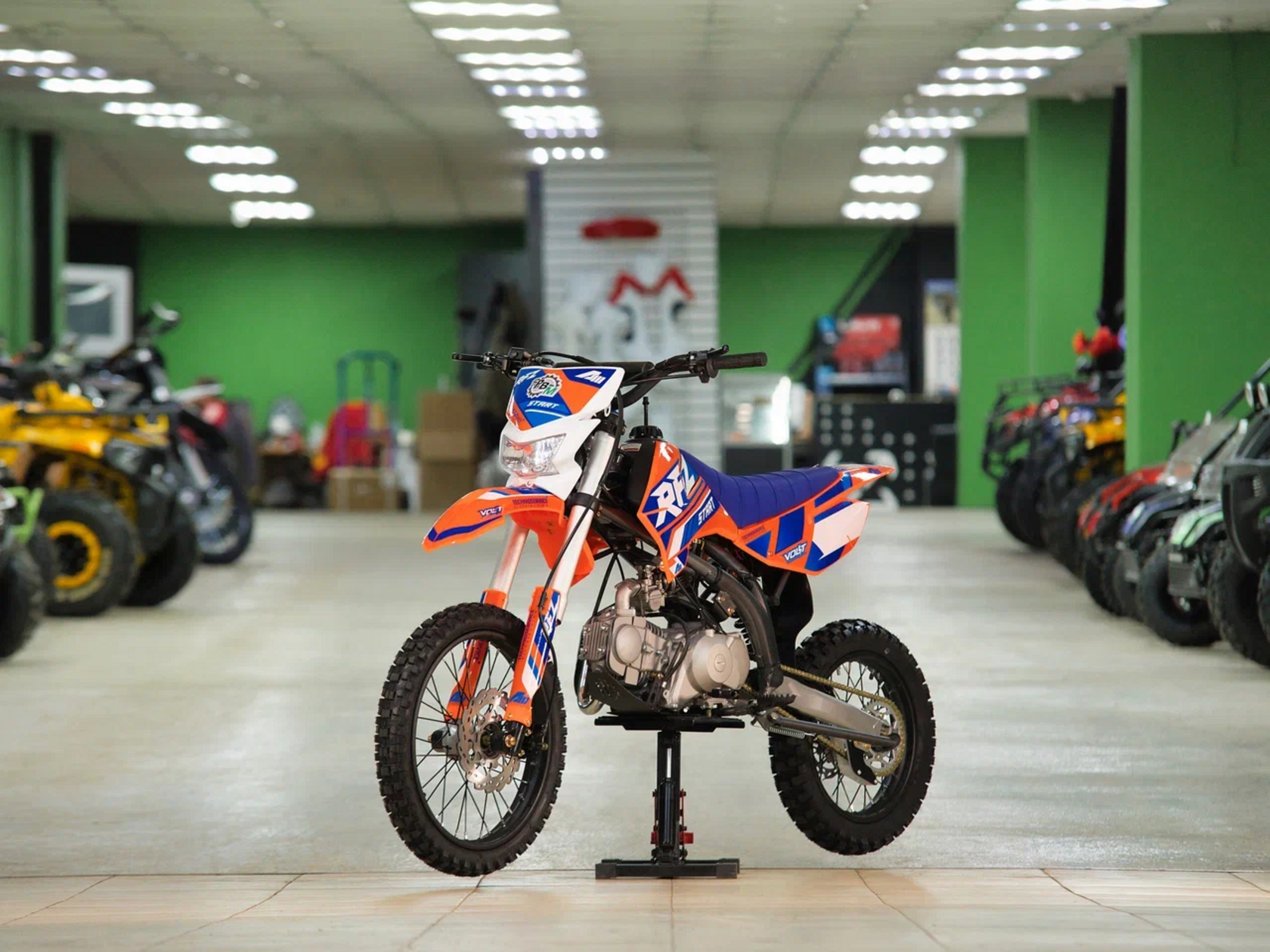 Питбайк Apollo RFZ START 125X-LE, 17/14 оранжевый (фара, электростартер)