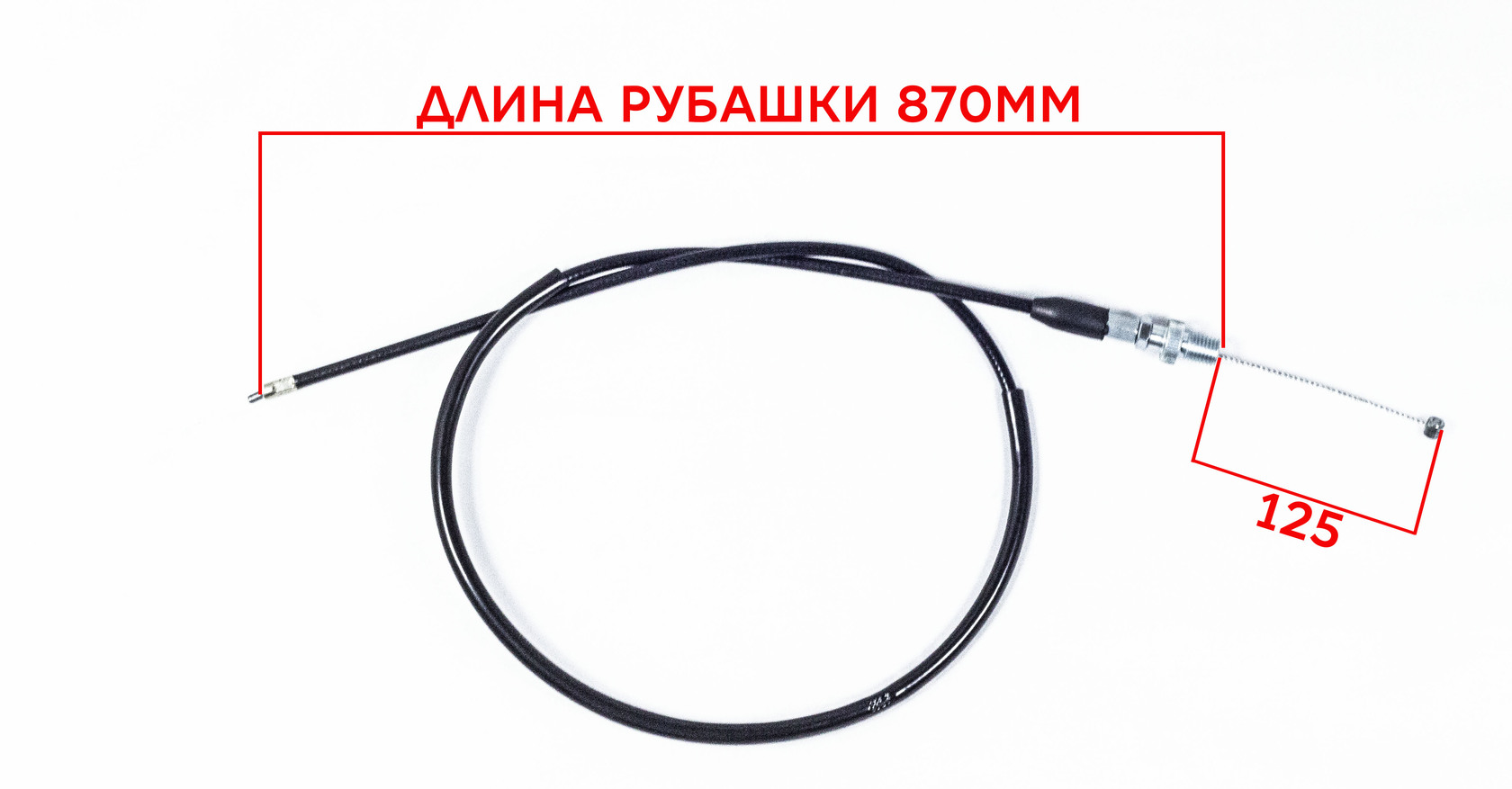 • Внимание: перед покупкой обязательно рулеткой измерьте длину рубашки (870 мм) и вылет (125 мм) вашего старого троса. Данные параметры являются критически важными для правильной работы карбюратора!