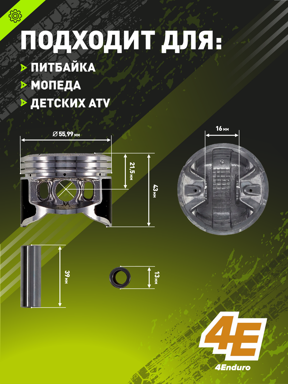 Прочный поршень в сборе с кольцами и пальцем 13 мм