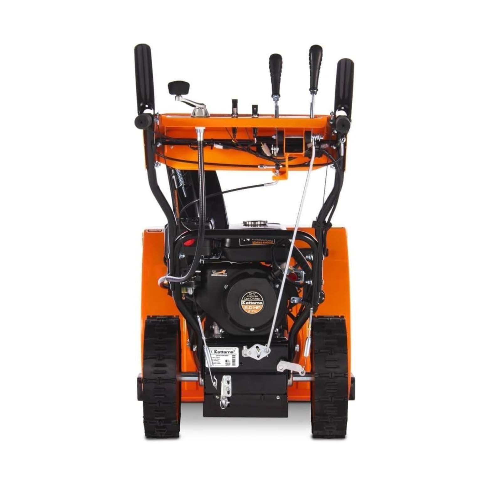 Снегоуборочная машина Kettama 80S Superior представляет собой «младшую» модель линейки Superior. Однако она также обладает всеми её основными преимуществами. Снегоуборщики линейки Superior, выпускаемые компанией Kettama, представляет собой класс полупрофессиональной техники. Основными отличиями от класса бытовой техники являются повышенная производительность и рабочая ресурсность.На Kettama 80S установлены безвоздушные шины SnowLink с технологией Runflat. Эти шины с глубоким протектором исключают пробуксовку агрегата на обледенелом участке. Увеличенное сцепление даёт возможность достичь показателей производительности практически равных гусеничному шасси. При этом, более низкий общий вес снегоуборщика позволяет достигать на этой модели показателей производительности до 5 т/ч со снегом плотностью до 500 кг/м3 (сброшенный с крыш). На свежевыпавшем влажном снегу плотностью до 200-230 кг/м3 этот снегоуборщик способен достигать производительности до 15 т/ч. Шины позволяют достигать высокого сцепления и повышенной производительности даже во время поворотов.Возможность эффективно перерабатывать снег разных типов сложности связана с конструкторским решением сочетания высокой мощности (8,5 л. с.), небольшой ширины уборки (660 мм) и усиленным сцеплением 14-дюймовых безвоздушных шин Runflat. Небольшая ширина ковша даёт возможность эксплуатировать технику на любом приусадебном участке с узкими дорожками. Повышенная высота ковша даёт возможность применения этой техники при работе с более высоким снегом. Однако это же создаёт определённые ограничения в работе с лежалым снегом с элементами сухого фирна. Дефлектор из усиленного металла позволяет менять направление выброса снега на 190 градусов при помощи рукоятки на корпусе машины. Стальной шнек с добавлением хромомолибденового сплава позволяет эффективно справляться даже со слежавшимся снегом.Скорость уборки: 6 передач вперёд и 2 назад, что позволяет выбрать оптимальный режим работы в зависимости от сложности задачи и типа снега. Металлическая рама с добавлением холодостойкого нихрома обеспечивает долговечность конструкции и возможность работать даже при экстремально низких температурах. Снегоуборщики Kettama. Наша техника станет для вас отличным подспорьем в уборке льда. Надёжный и стабильный двигатель с длительной гарантией, обеспечиваемой опытными специалистами, всегда вас выручит в момент нужды и избавит от лишней мороки. При этом нашим инженерам удалось добиться достойного соотношения качества к цене. Это позволит облегчить жизнь Вам и Вашей семье, не получив серьёзного урона по кошельку.Снегоуборщики Kettama являются одними из самых передовых и технологичных на российском рынке. Несмотря на свой привлекательный внешний вид, дизайн предельно прост и функционален, что повышает надёжность техники, исключая случайные поломки и снижая частоту обслуживания даже при регулярном использовании. Специально разработанные шнеки-ледорубы с агрессивным строением лезвий позволяет избавляться от любого, даже замёрзшего снега, и даже льда. Благодаря им Вы просто не будете знать, что есть непреодолимые препятствия. Специально разработанная система направляющих механизмов позволяют регулировать наклон и положение ковша, давая возможность адаптировать механизм под любые ситуации. Проверенные временем и сотнями ты