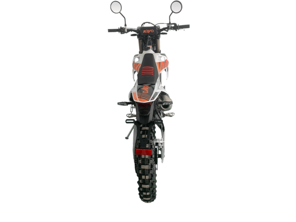 Мотоцикл KAYO T3 300 Enduro 21/18 2025 ПТС – надёжный и производительный эндуро, готовый отправиться по самым сложным маршрутам.Оснащён 4-тактным двигателем объёмом 271,3 см³ с верхним распредвалом и воздушным типом охлаждения. Максимальная мощность в 21,75 л.с. развивает при 8500 об/мин, а максимальный крутящий момент 22 Нм при 6500 об/мин. За подачу топлива отвечает карбюратор PE30. Он обеспечивает топливную экономность и бесперебойную работу двигателя даже в самых жёстких условиях. Соотношение диаметра цилиндра и хода поршня 75,0х61,4. Степень сжатия 9,29:1. Запуск двигателя осуществляется с помощью электростартера или кикстартера. Тип зажигания CDI.Механическая коробка передач имеет 5 ступеней. Привод цепной. Объём топливного бака 8 литров.На мотоцикл установлены спицованные колёса диаметром 21 дюйм спереди и 18 дюймов сзади. Длина подвески спереди 940 мм, длина задней подвески 450 мм. За торможение отвечают дисковые гидравлические тормоза.На мотоцикл установлены спицованные колёса с алюминиевыми ободами, ступицами и стальными буксаторами. Диаметр колёс 21 дюйм спереди и 18 дюймов сзади.За амортизацию отвечает подвеска со стальной прогрессией. Длина передней подвески 940 мм, длина задней подвески 450 мм. Траверсы и задний маятник выполнены из литого алюминия.Мотоцикл имеет ПТС и оснащён всем необходимым для поездок по дорогам общего пользования: диодной светотехникой, звуковым сигналом, цифровой приборной панелью, зеркалами заднего вида. Светотехника представлена яркой фарой для поездок в тёмное время суток, поворотниками, стоп-сигналом. Руль Fatbar выполнен из литого алюминия. Имеются дополнительные подножки для поездок с пассажиром.Габариты мотоцикла 2120х810х1260 мм, вес 119 кг. Клиренс 340 мм, колёсная база 1470 мм, высота по седлу 940 мм.
