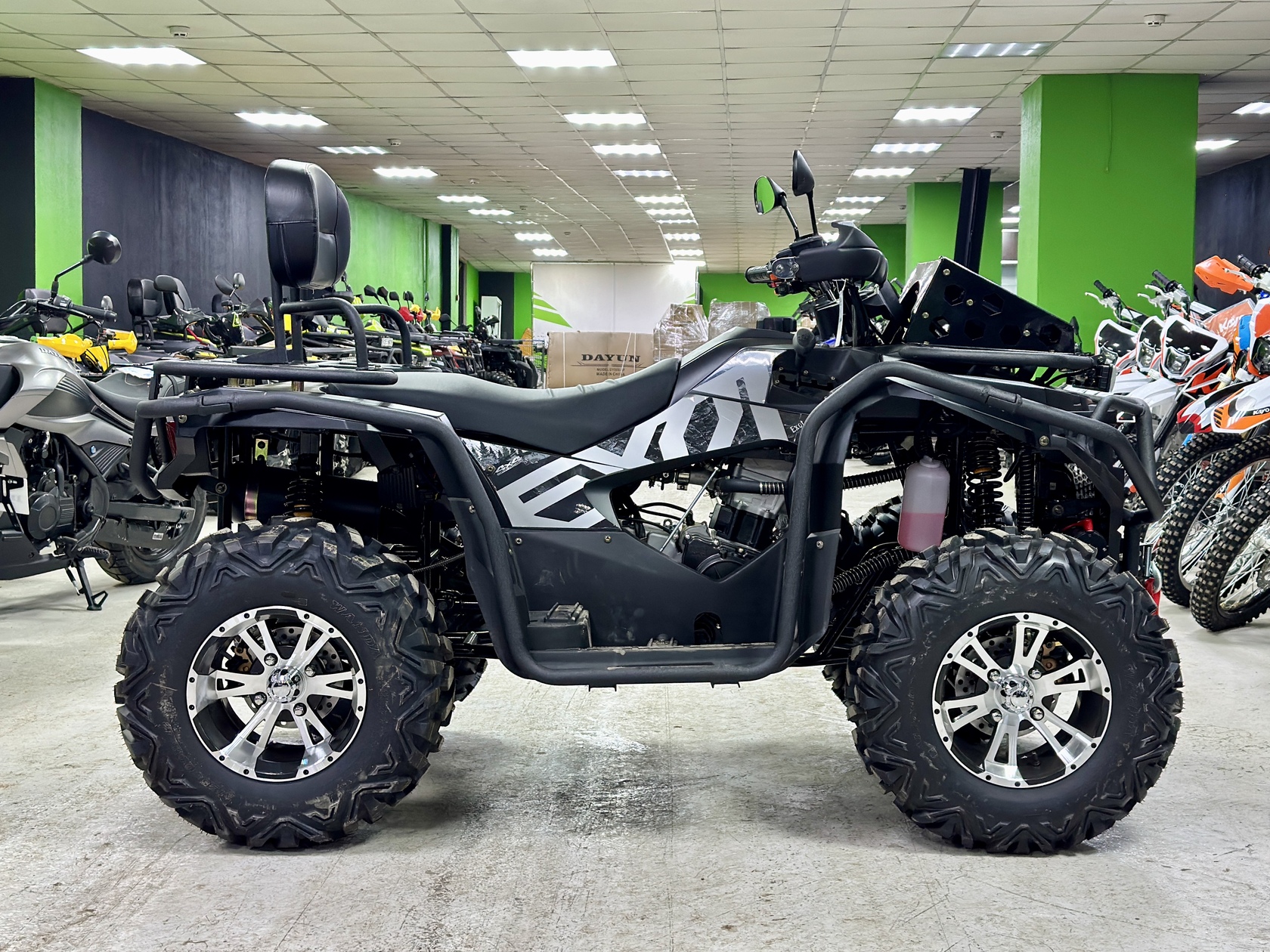 Комплектация Багажник: Сзади и спереди; Лебедка: Есть (управление кнопками на руле); Светодиодные фары головного света (ближний-дальний свет), задний габарит/стоп-сигнал, поворотники, «аварийка»