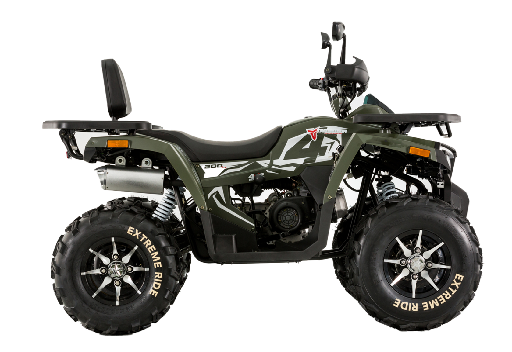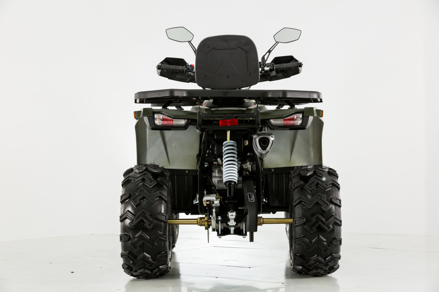 Квадроцикл TAO MOTOR SHARK 200 – сочетает в себе удобство, простоту обслуживания и хорошую проходимость в самых разных условиях использования. Благодаря отлично настроенной подвеске управление и передвижение на нем становится очень комфортным. Все неровности и кочки, будут проглатываться без проблем.Квадроцикл оснащен 161 QMK на 200 см3 двигателем c воздушно-масляным охлаждением и автоматической коробкой передач с реверсом, дисковыми тормозами, панелью приборов, ручным стартером. Он отлично подойдет для семейных покатушек, а также для рыбалки и охоты.
